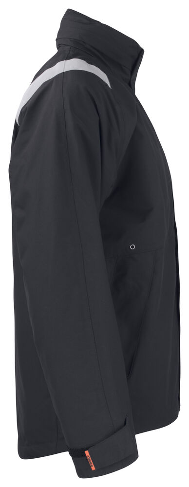 Vanntett skalljakke i slitesterkt polyamid. Innrullet hette med refleksbise. Reflekser på skulderparti. Brystlomme med ID-kortholder. Brystlomme. Innerlommer med glidelås og mobiltelefonlomme. Store frontlommer. Regulerbar i midjen, nede og på mansjetter. Vannsøyle: 16000 mm. Pusteevne: 9700 g/m² 24h.