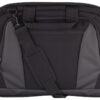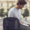 Elegant laptopbag. Tre store rom separert av en vattert sleeve som beskytter laptopen. Flere små rom for oppbevaring av accessories på innsiden. Avtagbar skulderstropp med plass til visittkort. To vatterte håndtak og to store ytterlommer med glidelås. En solid stropp bak gjør det mulig å feste baggen på en trolley.