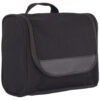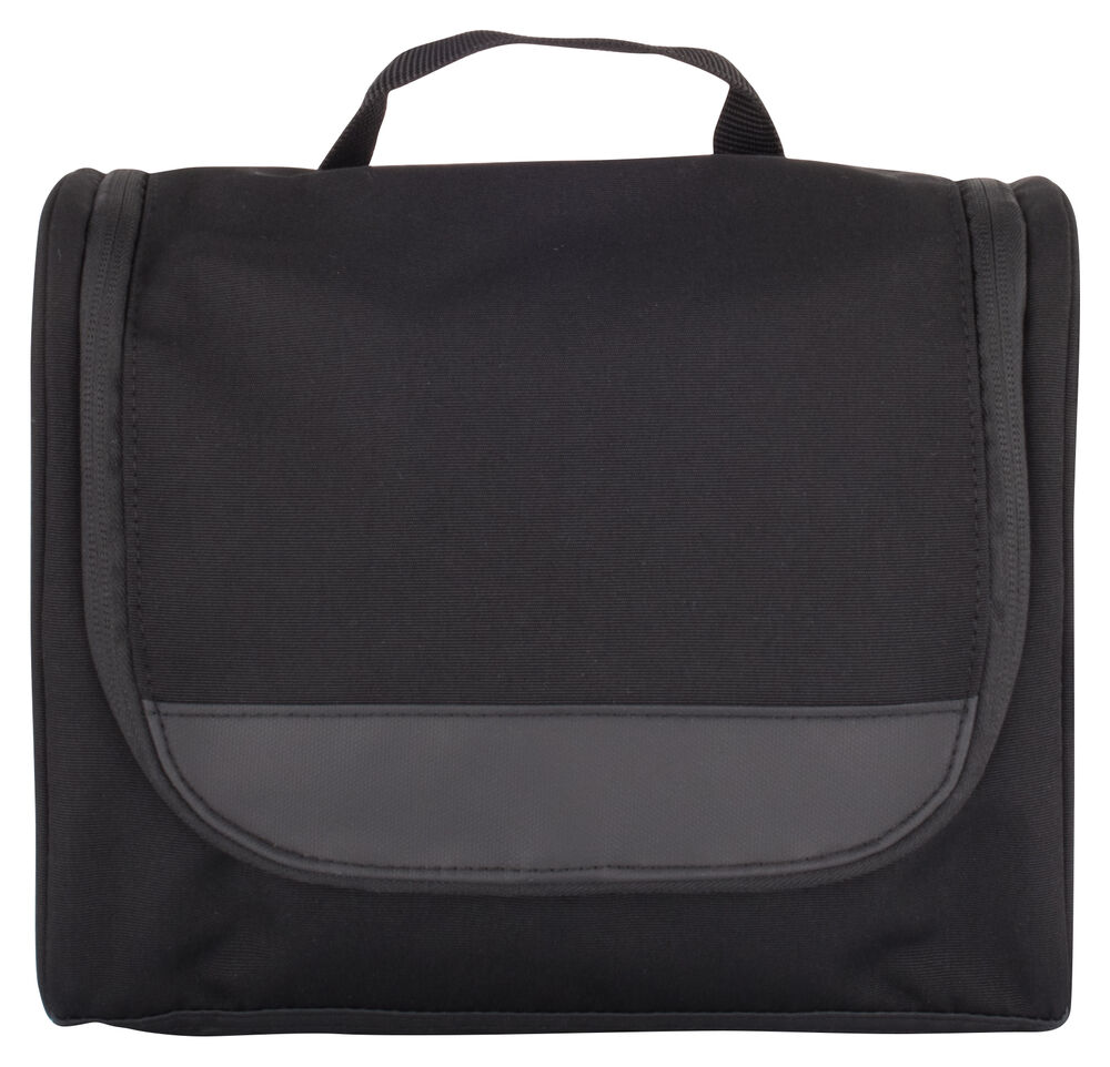 En moderne toalettveske med flere muligheter til organisering. Stor glidelåslomme bak for enkel tilgang. Krok til å feste toalettmappen når den er åpen.