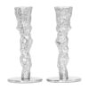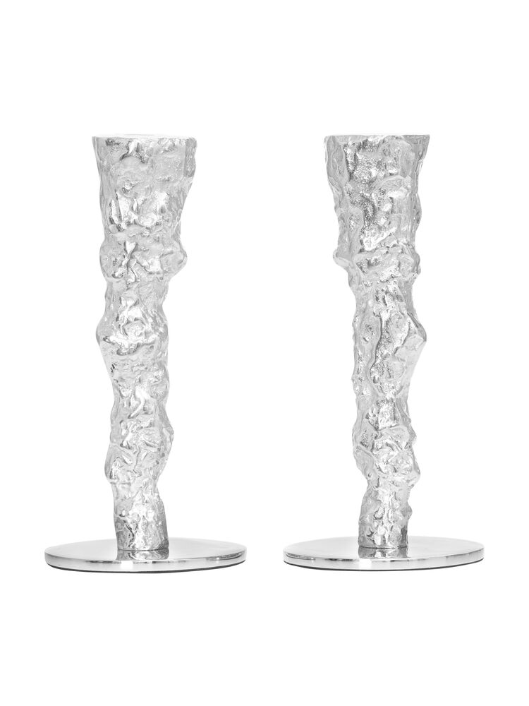 To lysestaker med stilrent, tvunnet design i aluminium med ståldetaljer. Dette gir dem et sofistikert og moderne uttrykk. De er ideelle for å gi interiøret ditt et stilig preg og skape en varm og innbydende atmosfære.