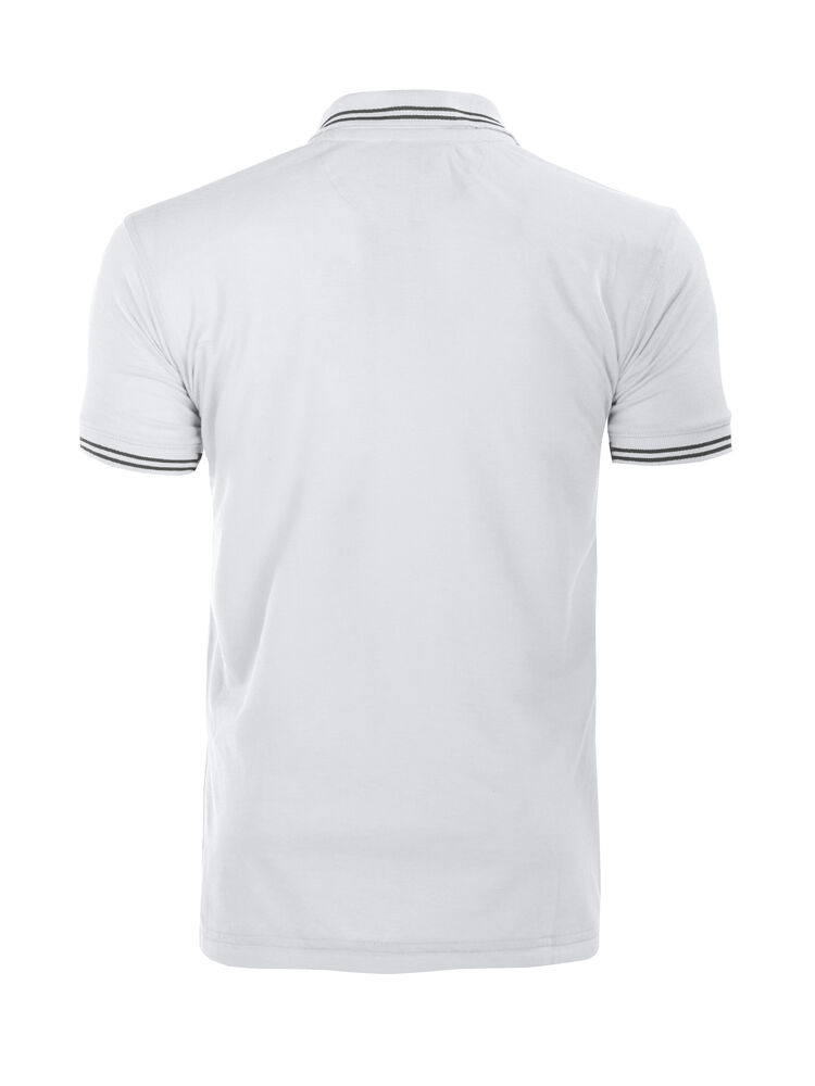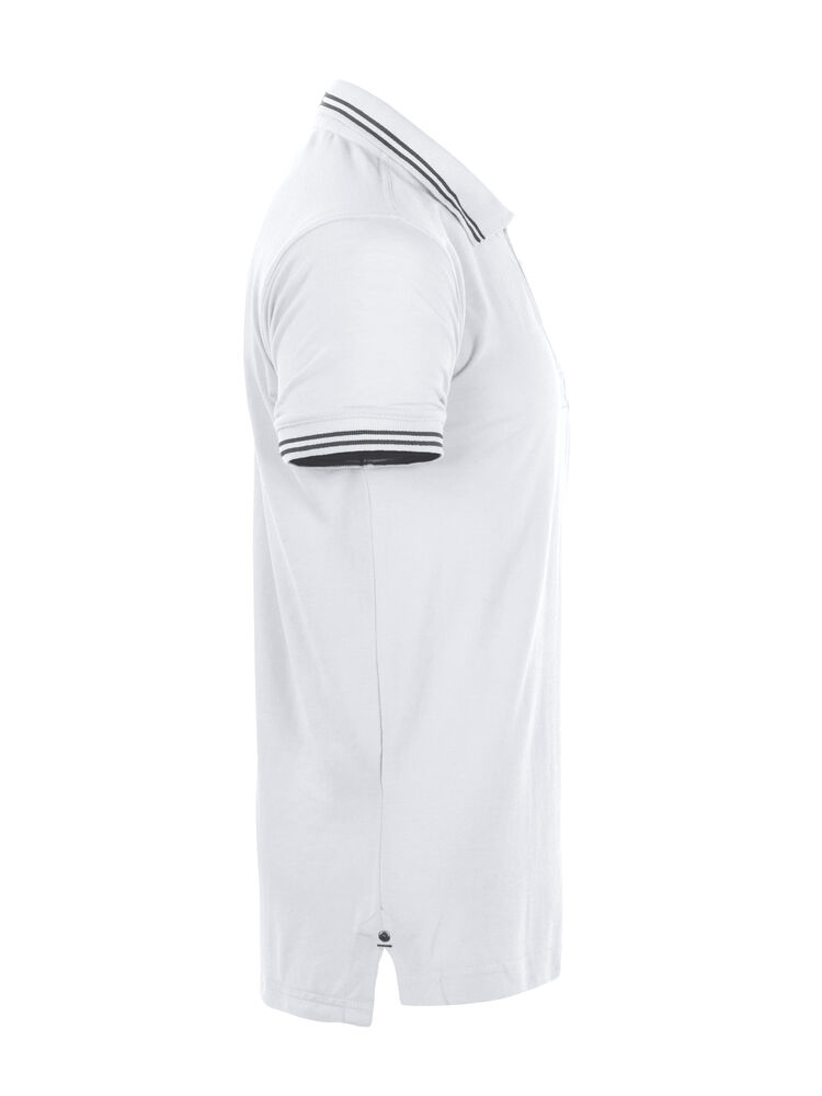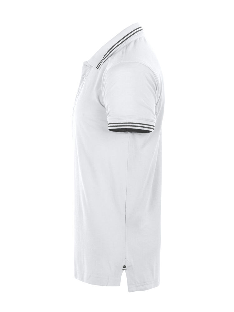 Kortermet pikétrøye . Ribbestrikket krage og mansjetter. Knappestolpe med tre knapper og splitt i sidene. Ventilasjonsåpninger under armene.