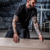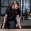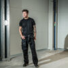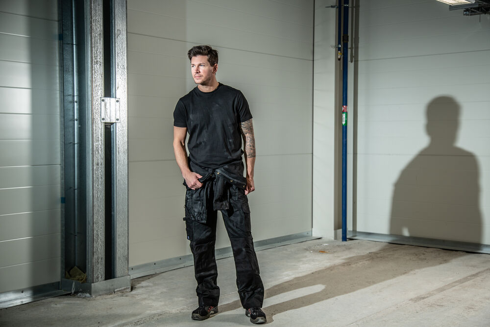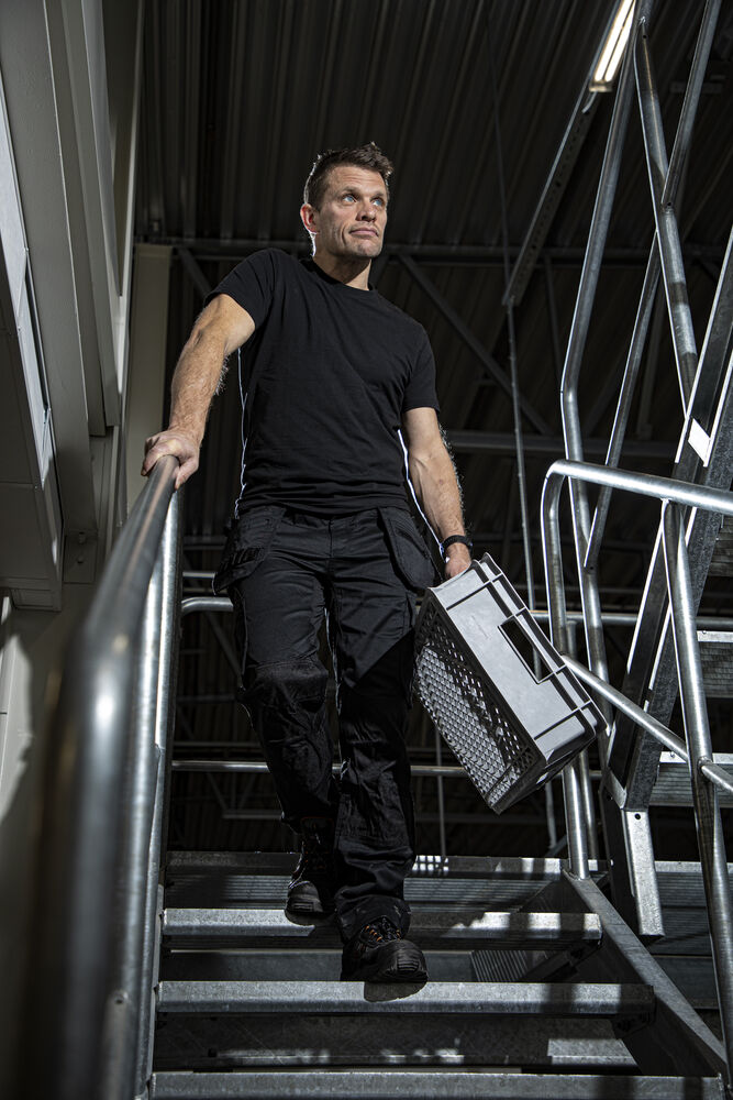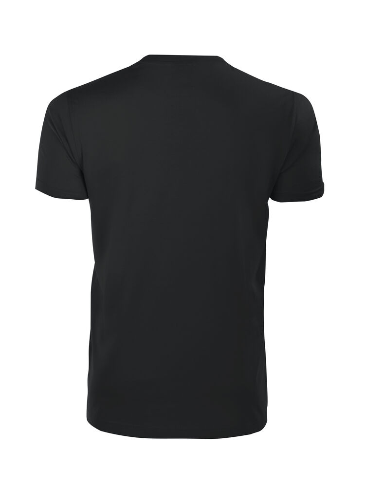 T-Shirt i single jersey (farge 10 og 17 i Interlock), moderne passform med dobbel krage og rundstrikket nakkebånd.