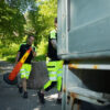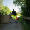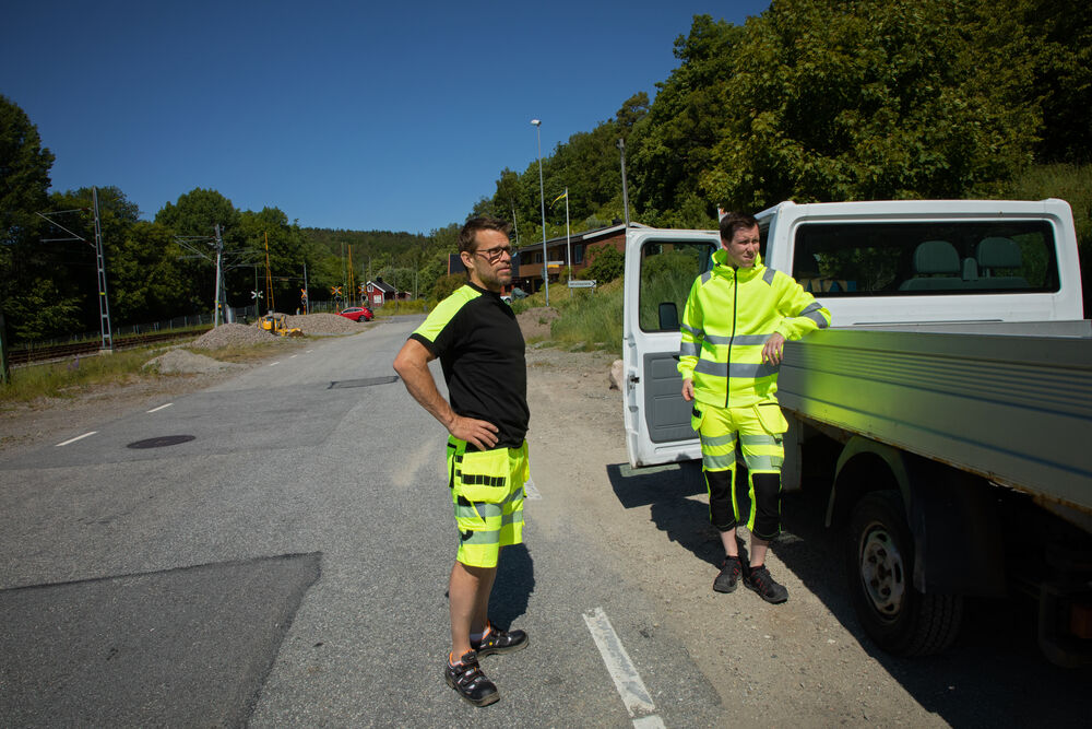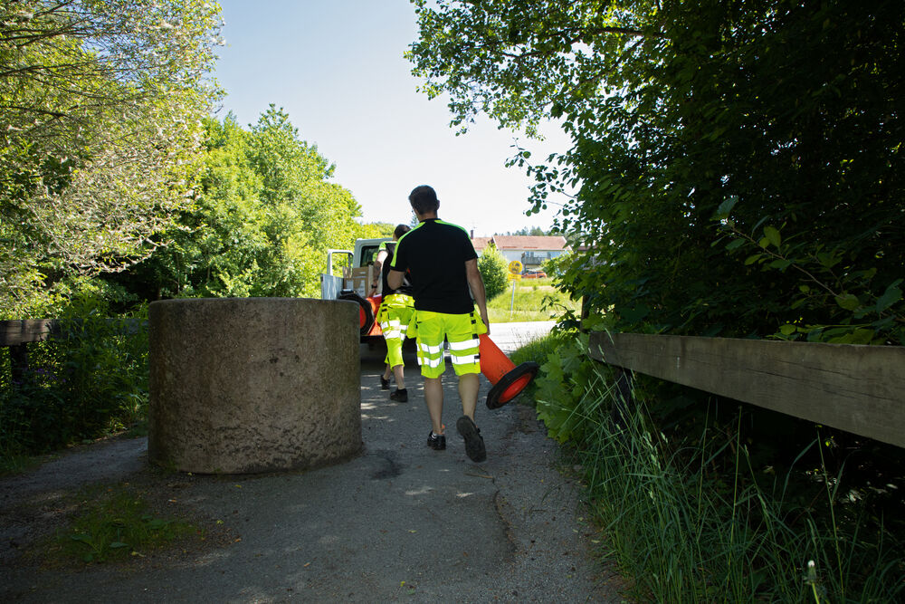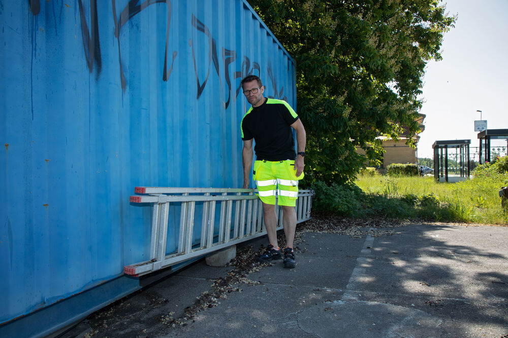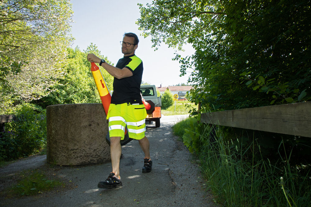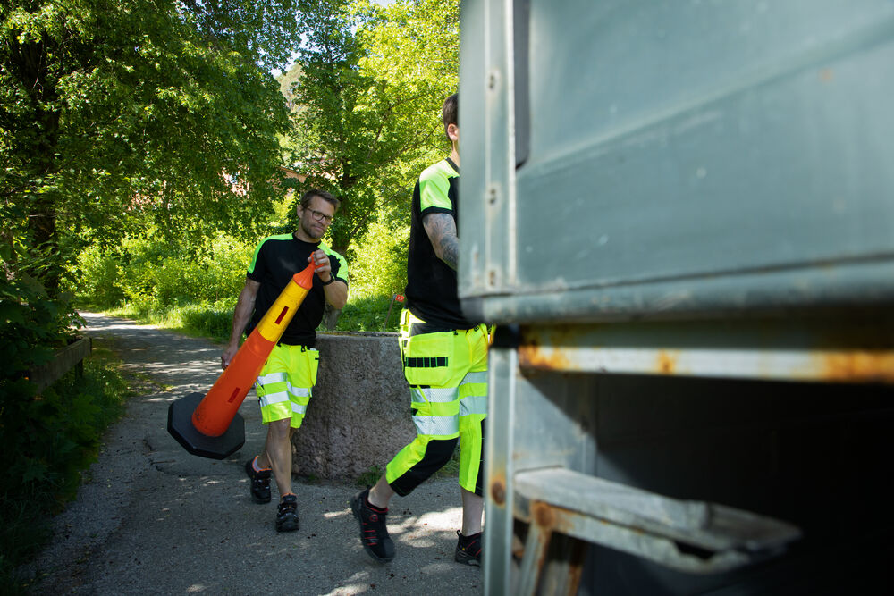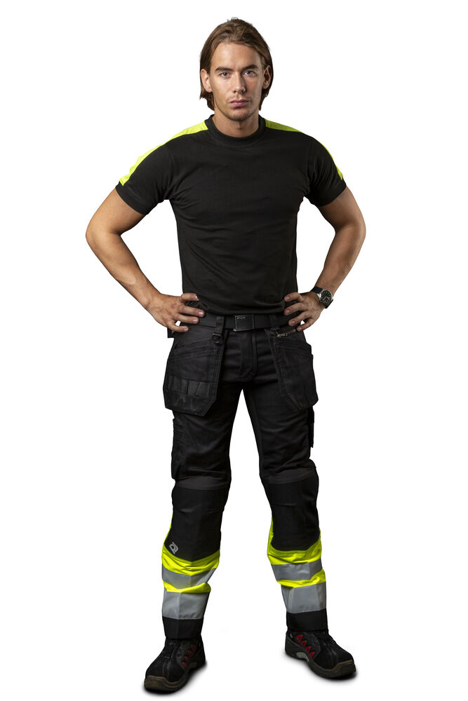 Bomulls T-shirt med varselmateriale på skuldrene.