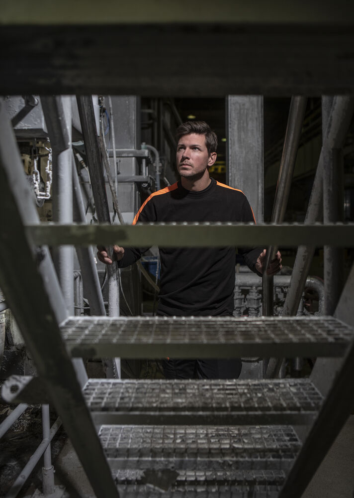 Langarmet bomulls T-shirt med varselmateriale på skuldrene.