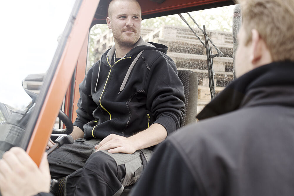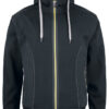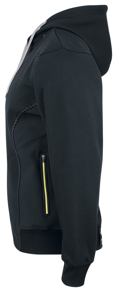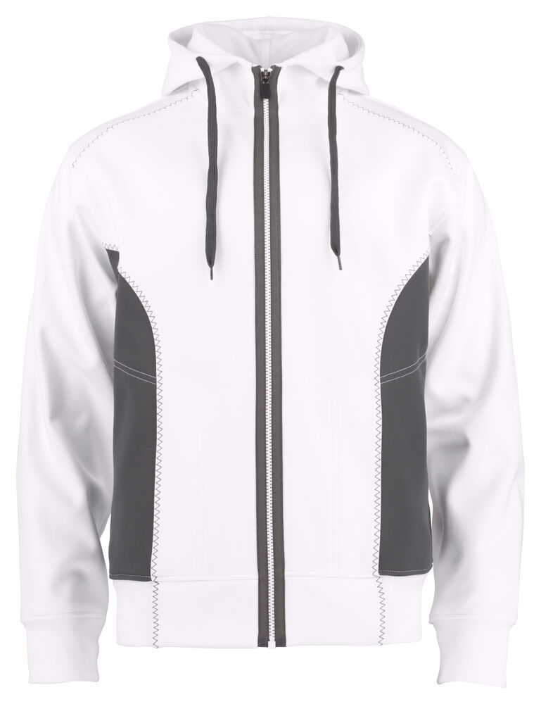 Hood med glidelås. Softshell-forsterkninger i siden. Sidelommer med glidelås.