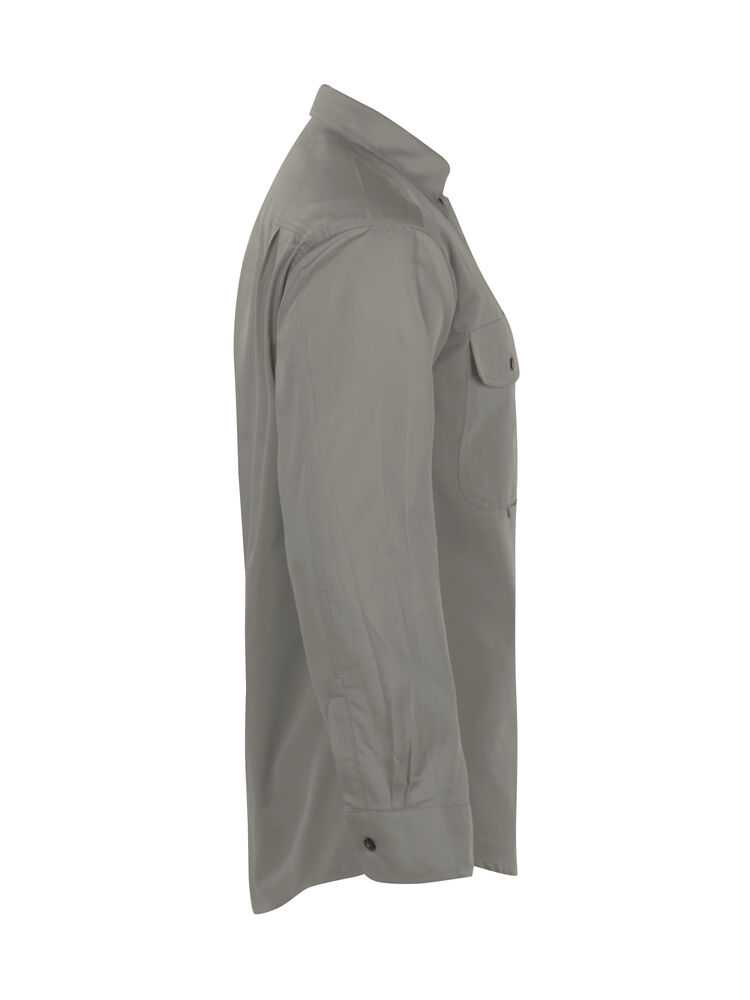 “Button down” skjorte. To store brystlommer med plass til Inbags. Åpning til penn på venstre brystlomme. Justerbare mansjettknapper med to knapper. Armkonstruksjon for god bevegelighet, dobbel bærestykke og to folder i ryggen.