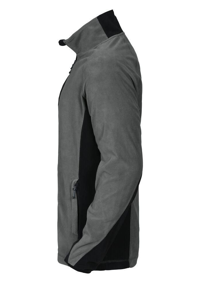 Mikrofleecejakke med raglanarmer for god bevegelsesfrihet. Hel glidelås i front – med beskyttelse til haken for å forhindre gnaging. Påsydd brystlomme med glidelås og innvendig feste for ID-kort. Sidelommer med skjult glidelås. To innerlommer.