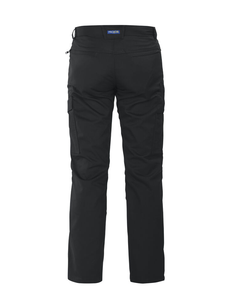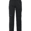 Arbeidsbukse med moderne passform uten fold. Sidelommer i front, sikkerhetslomme med glidelås på høyre side og nøkkellomme med D-ring på venstre side. To baklommer. To benlommer. Venstre benlomme har klaff og innvendig mobillomme, loop for ID-kortholder og en lomme med glidelås. Høyre benlomme har plass til mobiltelefon, penn, papir og tommestokk. Innvendige knebeskyttelseslommer. Hemper under baklommene og benlommer til å feste Inbags i.
