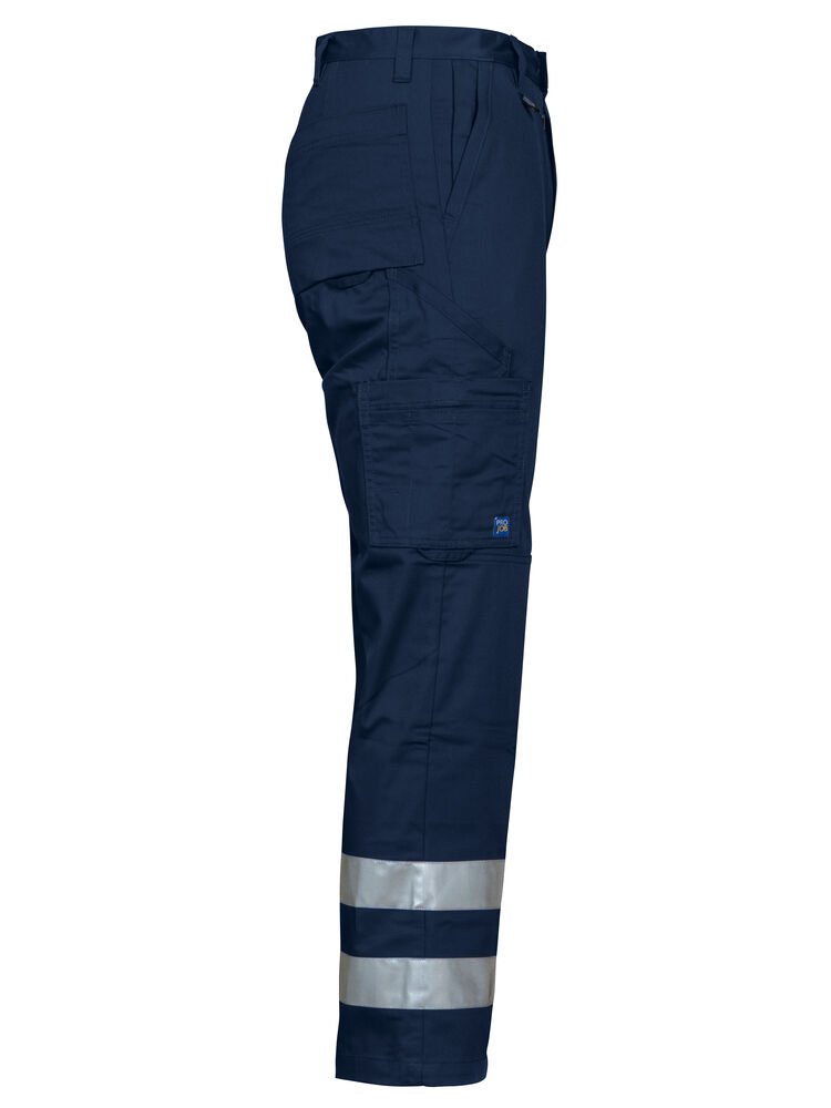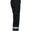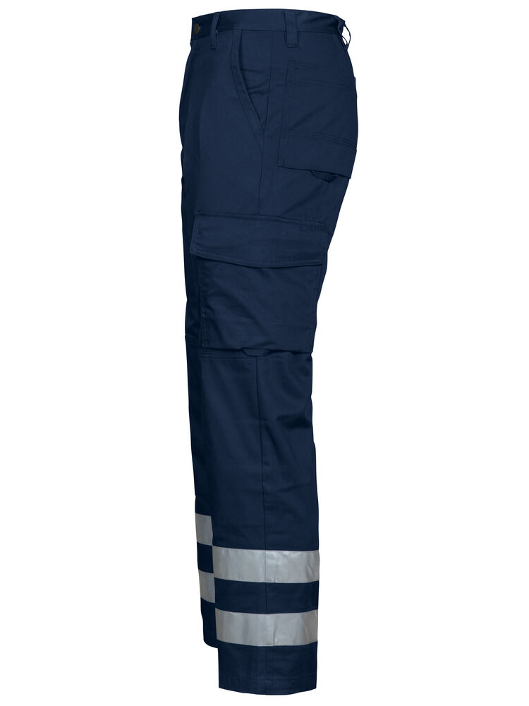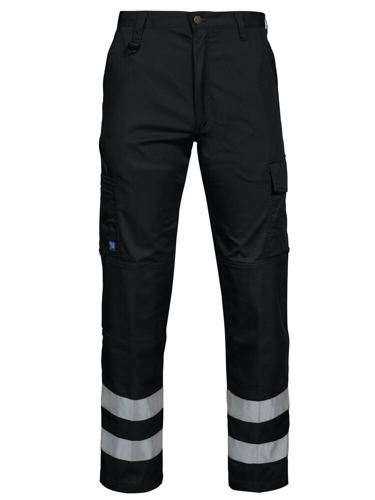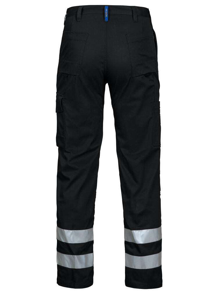 Midjebukse med to 50 mm reflekterende bånd rundt hvert ben. Sidelommer, den høyre med innvendig sikkerhetslomme med glidelås. Benlommer, på venstre side en romslig lomme med klaff og borrelås, samt en telefonlomme. På høyre side er det lommer for penner, papir og tommestokk. Baklommer. D-ring foran. Innvendige knebeskyttelseslommer.