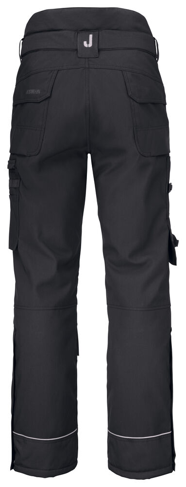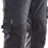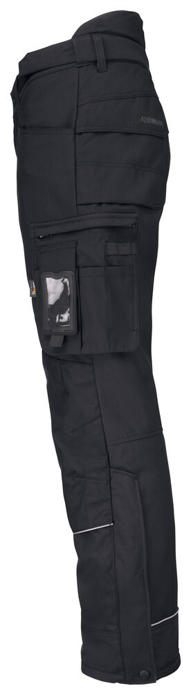 Quiltfôr gir smidighet. Lett bukse i slitesterkt og vannavstøtende 100 % STAR-polyamid. Regulerbar midje. Høyere rygg motvirker kald trekk. Romslige frontlommer. Forsterkede baklommer. Benlomme med ID-kortholder og mobiltelefon. Tommestokklomme med knivrom. Forbøyde knær med knebeskyttelseslommer i Cordura®. Knebeskytterne kan justeres i to posisjoner. Snor i benavslutningen hindrer trekk. Bånd med trykknapp muliggjør feste mot sko. Glidelås opp til kne.