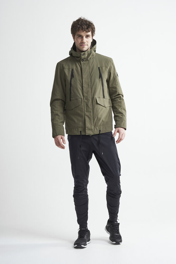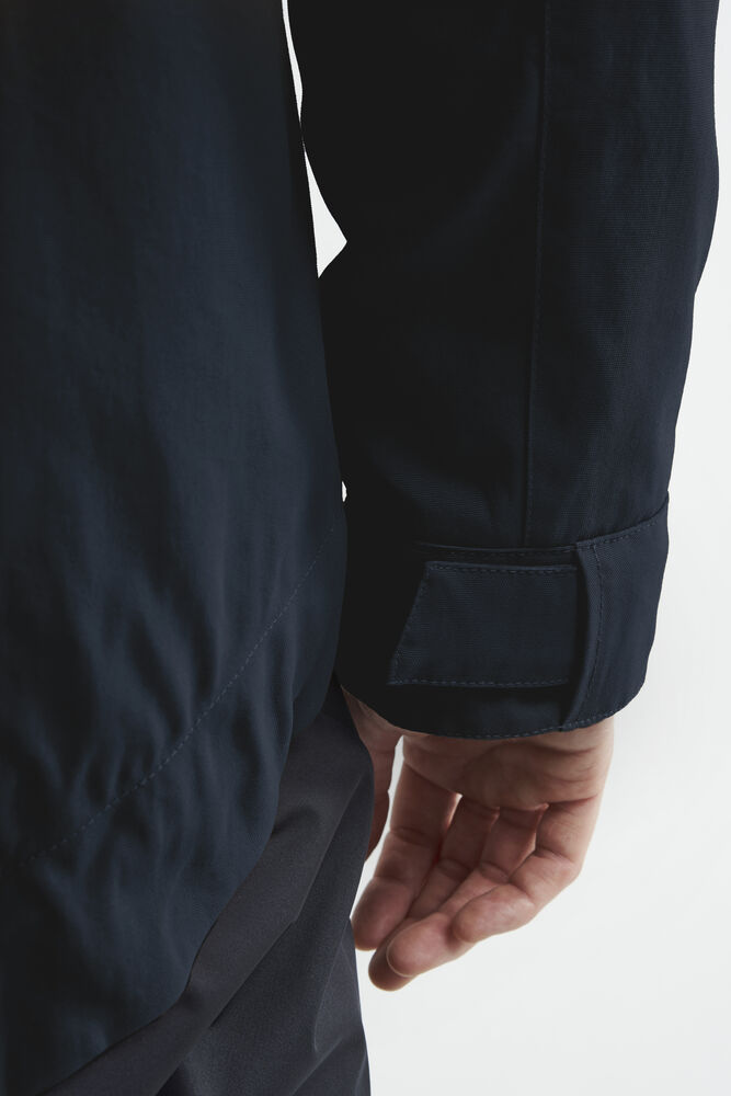Skalljakke og lett vattert jakke som kan brukes hver for seg eller sammen for optimal varme på kalde vinterdager. Skalljakken til herre har to brystlommer med glidelås. Skalljakken til dame har én brystlomme med glidelås. Begge har to sidelommer med klaff og glidelås. Justerbar midje og innerlomme med glidelås. Ribb i krage og ermavslutning. Innerjakken har to sidelommer med knappelukking.