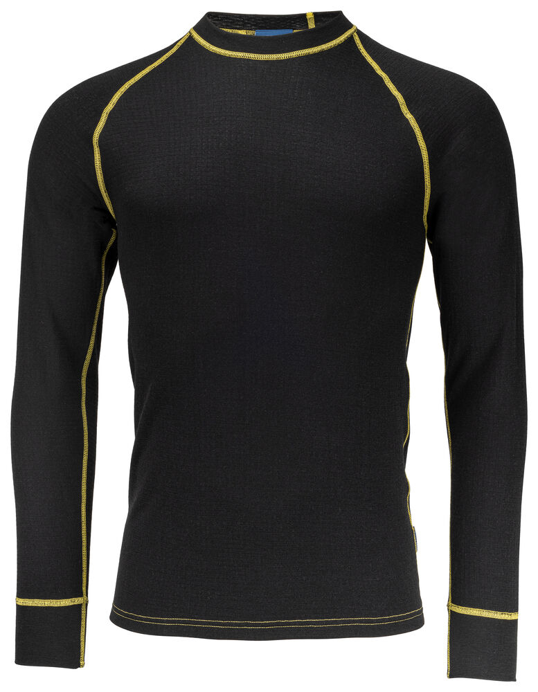 Undertrøye i mulesingfri merinoull som holder kroppen varm og tørr i kalde forhold. Mykt og elastisk materiale sørger for ubegrenset bevegelsesfrihet. Forlenget rygg. Mansjetter i ermeavslutningene.