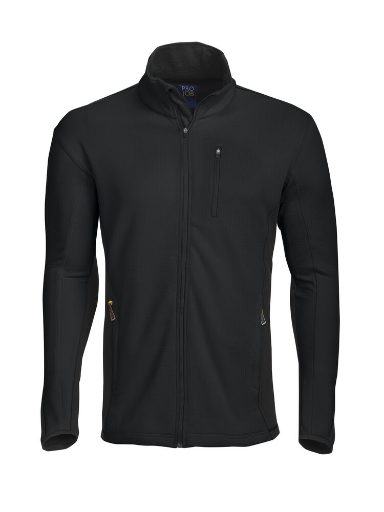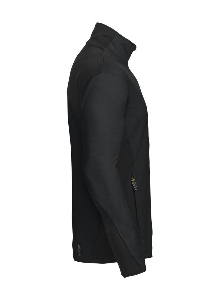 Komfortabel og funksjonell topp med fleecefôret krage. Hel glidelås i front – med glidelåsbeskyttelse for å forhindre gnaging på haken. Bryst- og sidelomme med glidelås. Farge red-35 og grey-98 har svarte kontraster som gir et kult uttrykk.