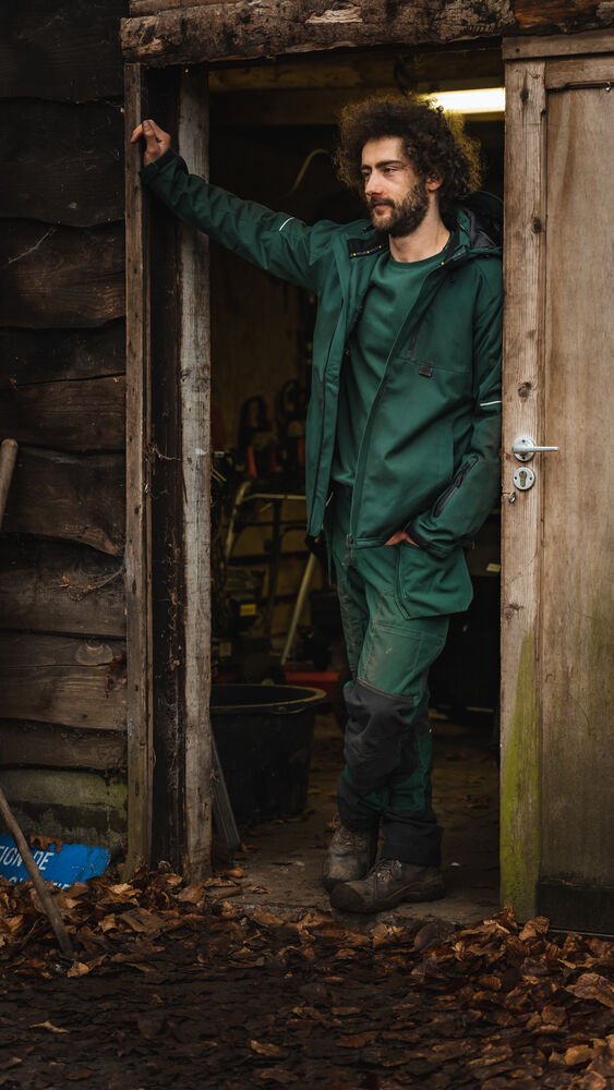 Vattert herrejakke i et funksjonelt materiale som er vind- og vannavvisende. Quiltet vattert fôr. To brystlommer, den venstre med innvendig telefonlomme. Feste for ID-kortholder. To sidelommer. En lomme på venstre erme. Innvendig lomme med hull tilpasset for handsfree på venstre side. Ventilasjonsglidelås under ermene. Snøring i midjen. Regulerbar ermavsluttning. Forlenget rygg for bedre komfort. Reflekspiping på erme og rygg. Avtagbar og regulerbar hette. Fleecefôret krage for ekstra komfort.
