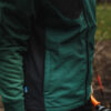 Softshellvest med god pusteevne. To sidelommer med glidelås. Vertikal brystlomme med glidelås og skjult brakett for feste av ID-kort. To innerlommer. Glidelås i front med innvendig vindklaff og hakebeskyttelse for å forhindre gnaging. Jakken er justerbar med snøring i nederkant.