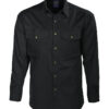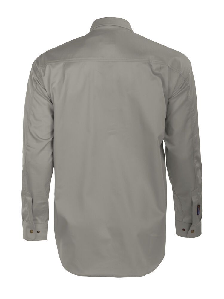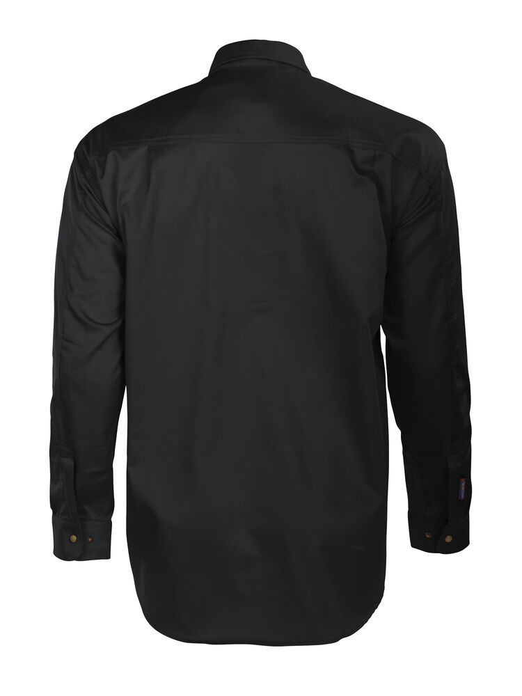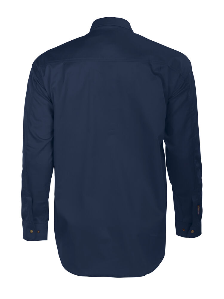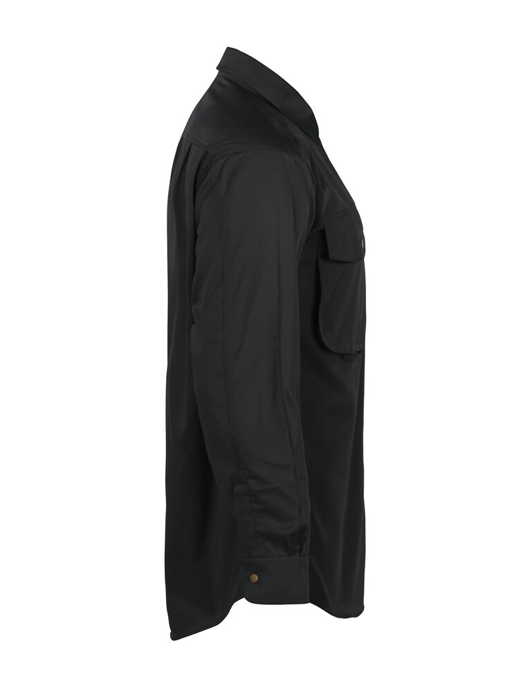 Skjorte med trykknapper i front. To store brystlommer med klaffer. Justerbare mansjetter med to trykknapper. Ermer designet for optimal bevegelsesfrihet. Doble bærestykker og to folder bak.