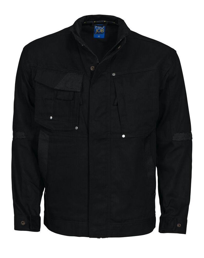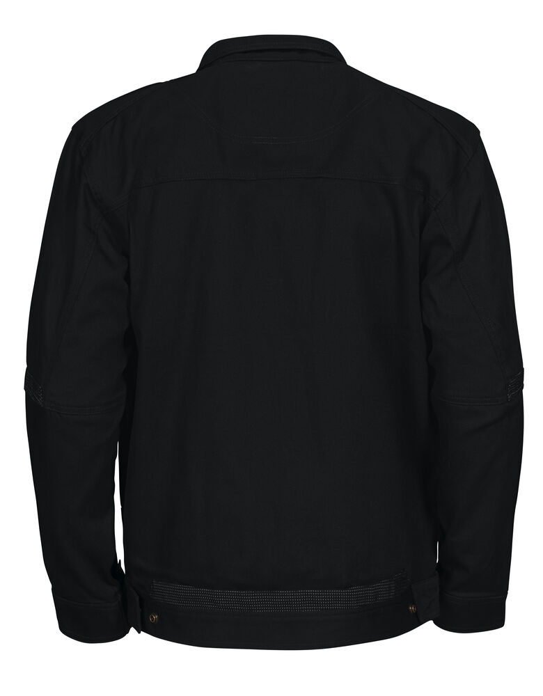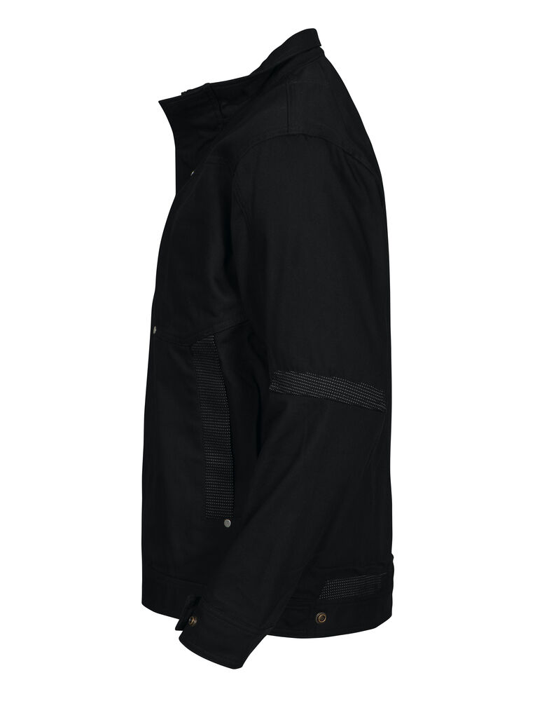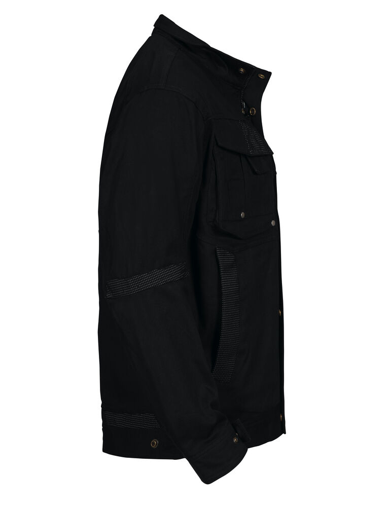 Slitesterk jakke i canvas. To brystlommer, den høyre lommen er til telefon, penn og feste for ID-kortholder. Den venstre er med glidelås. Glidelås opp i kragen. Innsydde framlommer. Regulerbar midje og armavsluttninger. Forbøyde armer. Innerlommer med dokumentlomme. Cordura detaljer med refleks.