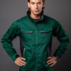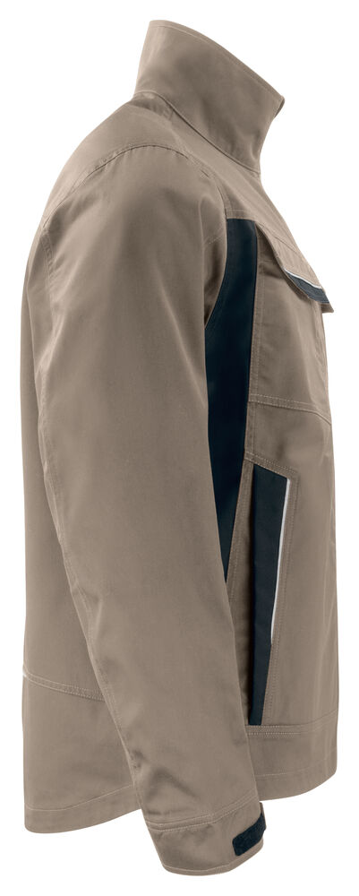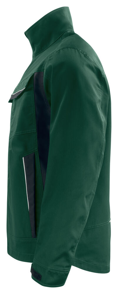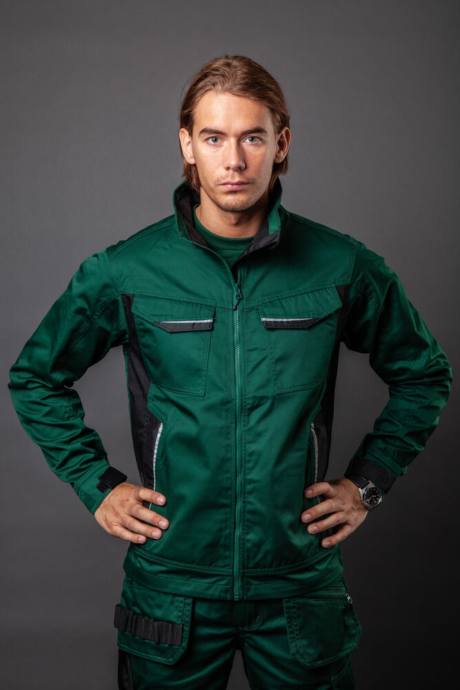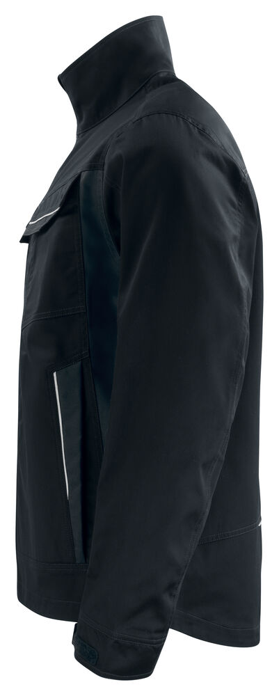 Servicejakke med glidelås opp til kragen i front, med innvendig vindklaff og hakebeskyttelse for å forhindre vindtrekk og gnaging. Fleecefôr i krage gir økt komfort. Brystlommer på begge sider, på venstre side innvendig brakett for ID-kortholder. Sidelommer med glidelås. Romslige innerlommer, samt en telefonlomme med borrelås. Forlenget rygg. Justerbare mansjetter med borrelås. Reflekterende piping bak og på frontlommer.