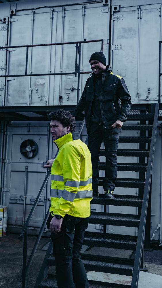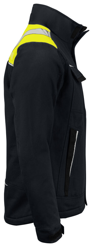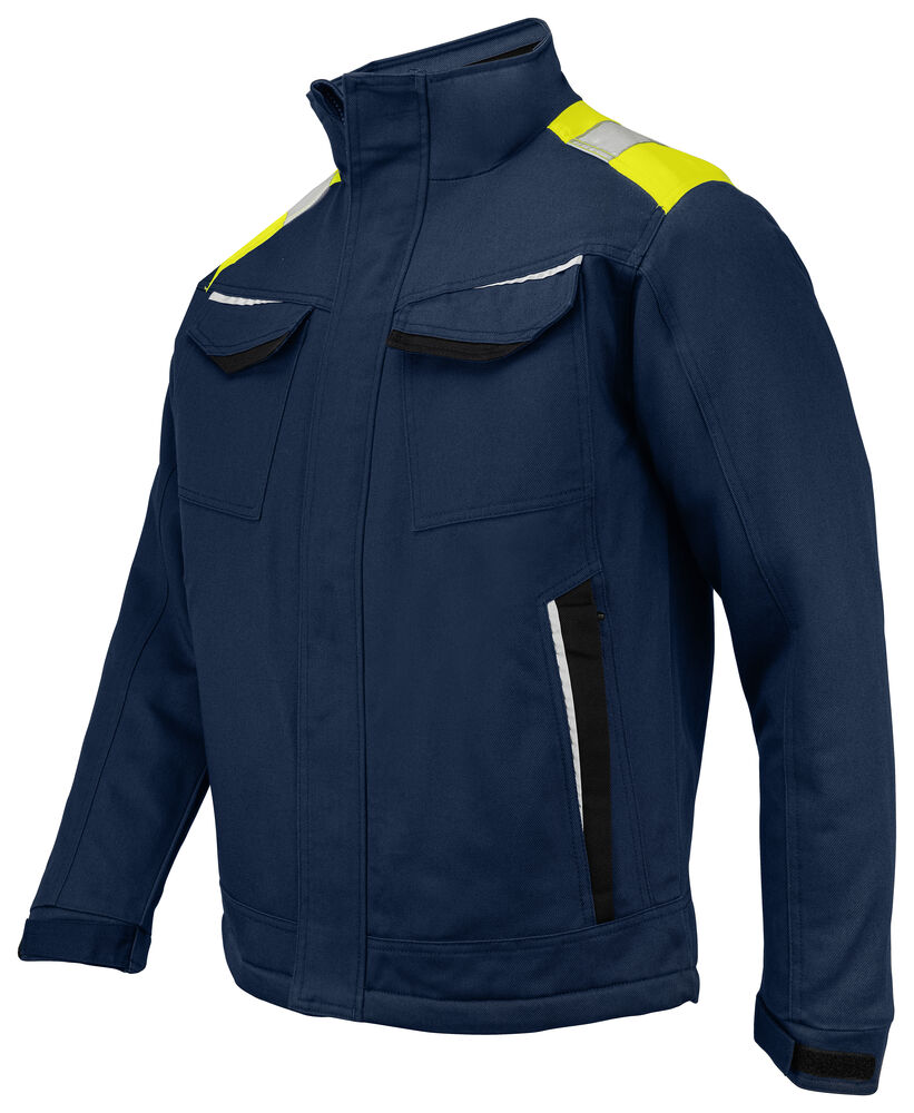 En lettere fôret servicejakke med glidelås opp i kragen i front, med innvendig vindklaff for å hindre trekk, samt hakebeskyttelse for å forhindre gnagsår. Fleecefôr i kragen gir økt komfort. Brystlommer, i venstre brystlomme er det et indre feste for ID-kort. Sidelommer med glidelås. Romslige innerlommer, også en innvendig telefonlomme som lukkes med borrelås. Forlenget i ryggen. Justerbare mansjetter med borrelås. Fluorescerende stoff og reflex over skuldrene gir økt synlighet. Kommer også med reflekspiping i nederkant rygg og på lommer i front. Fôret kan åpnes for å forenkle trykk og brodering.