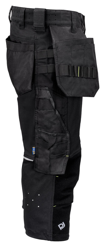 Piratbukse med stretch for maksimal bevegelsesfrihet og komfort. Moderne passform. 4-veis stretch over lår og sete, 2-veis stretch på baksiden av knærne og utsiden av leggen. Ventilasjonsåpninger med glidelås langs begge beina, i tillegg til ventilasjon i livet. På venstre side; lomme for verktøy og penner, i tillegg til en telefonlomme med borrelås og en brakett for å feste ID-kort. På høyre side; lomme for tommestokk og lomme for kniv med knivknapp. To hammerhanker. Mulighet for å feste MOLLE-system på begge sider. Refleksdetaljer for økt synlighet. Justerbare benavslutninger. Forbøyde knær. Innvendige lommer for knebeskyttere, justerbare i to høydenivåer. Hengelommer og beindetaljer er forsterket med Cordura®,. Knærne er forsterket med stretch kevlar for økt holdbarhet og komfort.