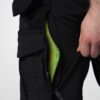Arbeidsbukse i full stretch og med 37,5™ teknologi. Sidene på toppen er ikke i stretch – dette for å gi buksen bedre stabilitet. Moderne passform. Benlommer på venstre side med plass til verktøy og penn, samt en mobiltelefonlomme med magnetlås og brakett for ID-kortholder. Sidelommer med glidelås. Cordura® forsterkede hengelommer. På høyre side, tommestokk- og verktøylomme med knivknapp. Braketter for verktøyholdere. Baklommer. Ventilasjon både på innsiden og utsiden av lårene og i knehasen. Forbøyde knær med knebeskyttelseslommer som kan justeres i to høyder, åpnes fra innsiden. Knærne er forsterket med Cordura®-stretch for maksimal holdbarhet og bevegelsesfrihet.