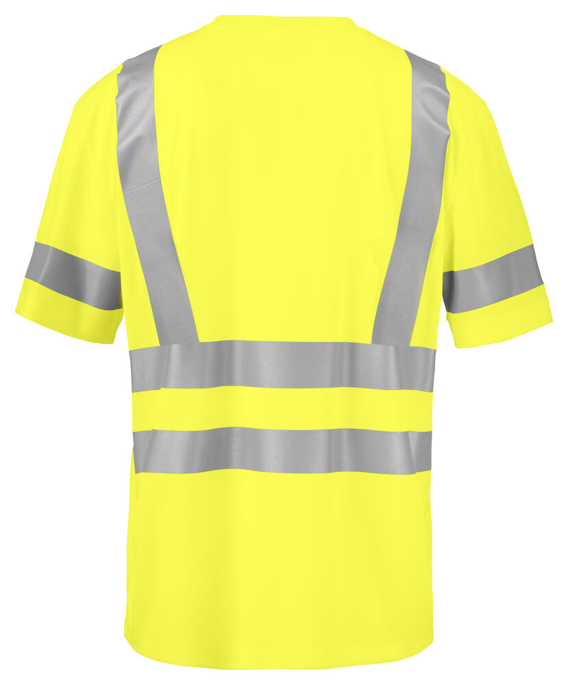 Hi-vis t-skjorte laget av spinnfarget polyester. Det funksjonelle materialet transporterer fuktighet bort fra huden. Det betyr at plagget tørker hurtig og holder deg fresh og tørr hele dagen. Transferrefleks.