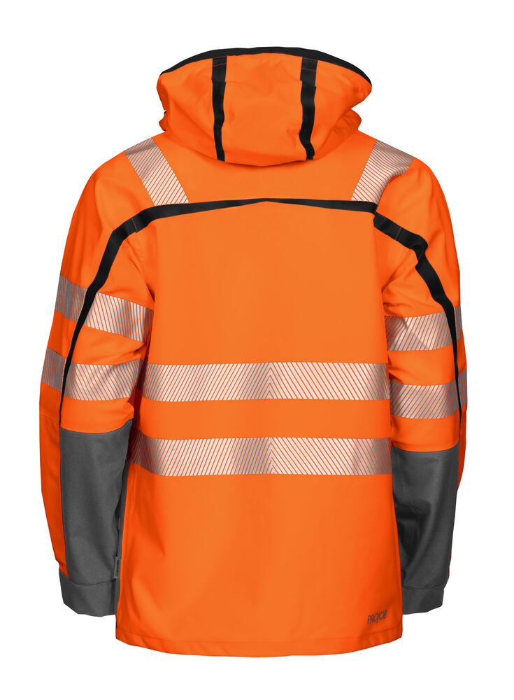 3-lags vind og vanntett jakke med teipede sømmer, avtag-bar hette og transferreflekser. Justerbar i enden med snor. Tre laminerte lommer med vanntett glidelås, en på venster underarm og to brystlommer, den venstre med hempe for ID-kortholder. Fleecefôrede sidelommer med glidelås og to store lommer med klaff. Dobbel vinklaff i front med toveis glidelås. Forbøyde armer med justerbar avslutning.