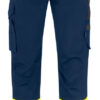Arbeidsbukse i varselklasse 1. Lettstelt bukse i polyester/bomull som holder form og farge.Hengelommer med ekstra rom og ekstra lomme med glidelås. Baklommer med klaff og borrelås.Lårlomme emed ekstra rom og klaff med borrelås. Tommestokklomme med knivholder. Knebeskyttelsen kan justeres i to høydenivåer. Forsterkning i hengelommer, tommestokklommeoch og på knærne. C42-64 kan forlenges med 5 cm med en fold i benavslutningen