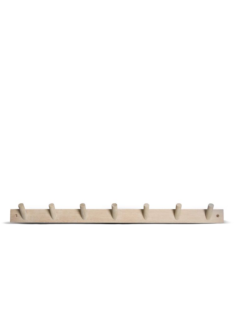 Veggmontert krok / kroklist for oppheng av klær og tilbehør. Else er tilgjengelig med en, tre, fem eller syv kroker. Alle er laget av eik.
