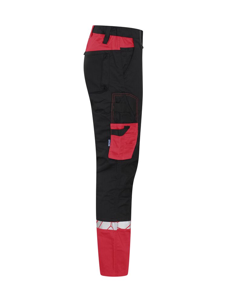 Arbeidsbukse med åpne sidelommer og baklommer med ekstra vidde, venstre side med klaff og magnetisk lukking. Forbøyde knær, stretchstoff i skrittet og innsydd stretchbånd i midjen for økt komfort. Benlommer, venstre sidelomme med klaff og magnetlukking, innvendig telefonlomme og brakett for ID-kort. På høyre side, lomme for tommestokk og lomme for verktøy med knivknapp. Knepute-lommer med glidelås som åpnes utenfra. Bredere beltestropp på baksiden for å forhindre trykk fra beltet. Skjult knapp foran. Forsterkning i tommestokklommen, baklommene og over knærne for økt slitestyrke.