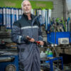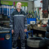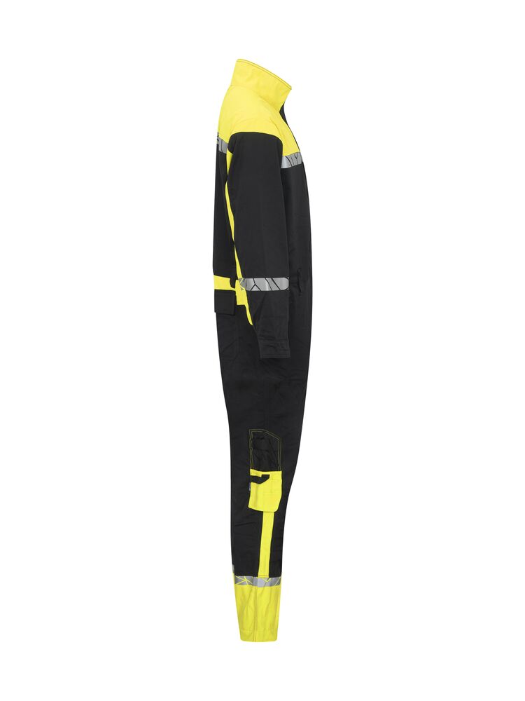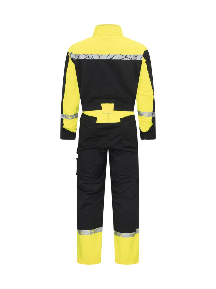 Kjeledress med toveis glidelås opp til kragen foran. Glidelåsen foran er dekket med klaff, trykknapplukking. Brystlomme på høyre side med innvendig feste for ID-kort. Dype sidelommer på begge sider, også åpninger for å nå lommer på buksen under kjeledressen. Benlommer, på venstre side en romslig lomme med klaff og borrelåslukking og en innvendig telefonlomme. På høyre side, lommer for penner, papir og tommestokk. Knepute-lommer med glidelås på utsiden. Forbøyde knær og justerbart innsydd stretchbånd i midjen for økt komfort. Baklommer, venstre baklomme med klaff og magnetisk lukking. Justerbare mansjetter med borrelås.
