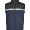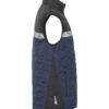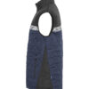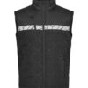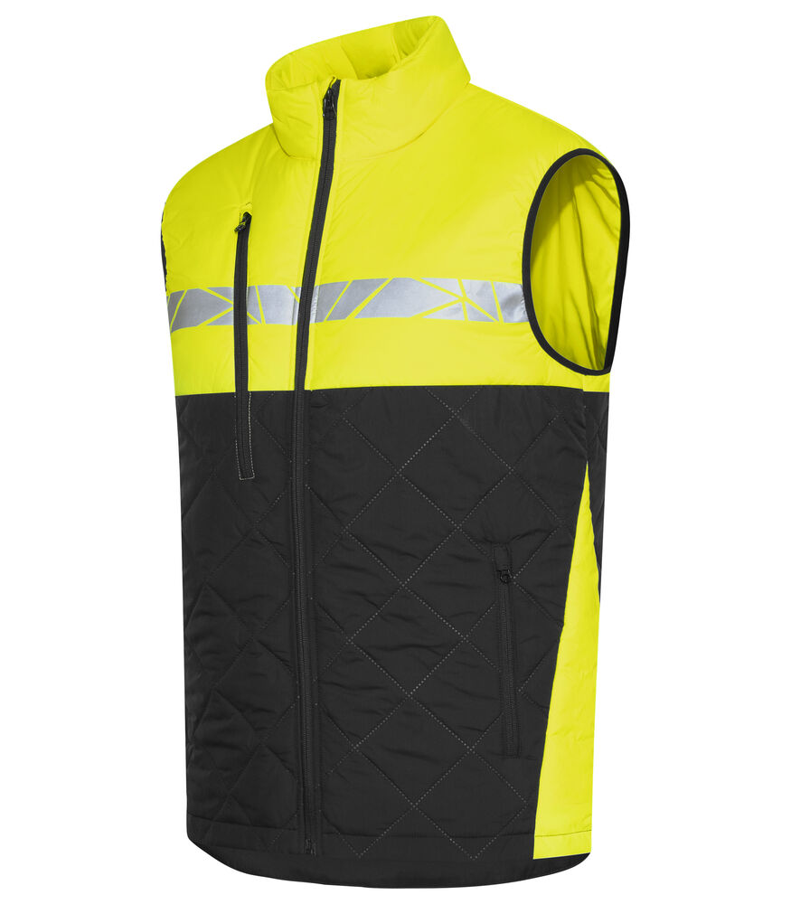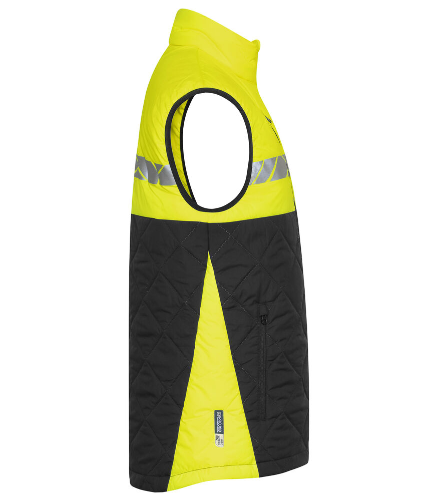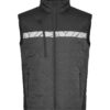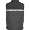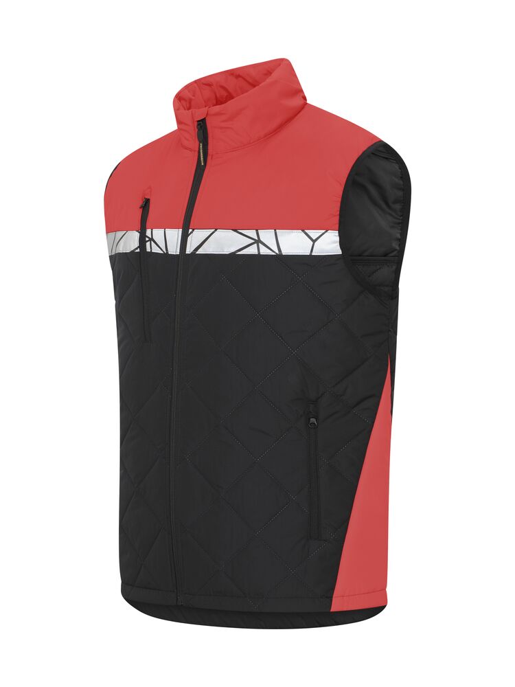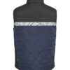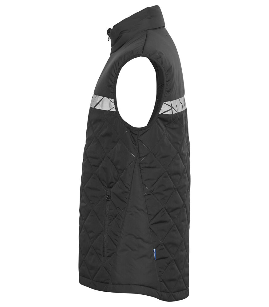 Vest i lett, sømløst, diamant-kviltet stoff. Brystlomme på høyre side med glidelås, samt innvendig feste for ID-kort. Sidelommer på begge sider med glidelåslukking. Lomme for vaskebrikker i venstre sidesøm.