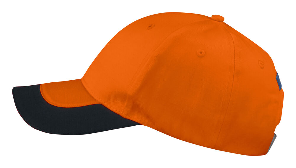 Caps med forbøyd skjerm, regulerbar borrelås bak i refleks.