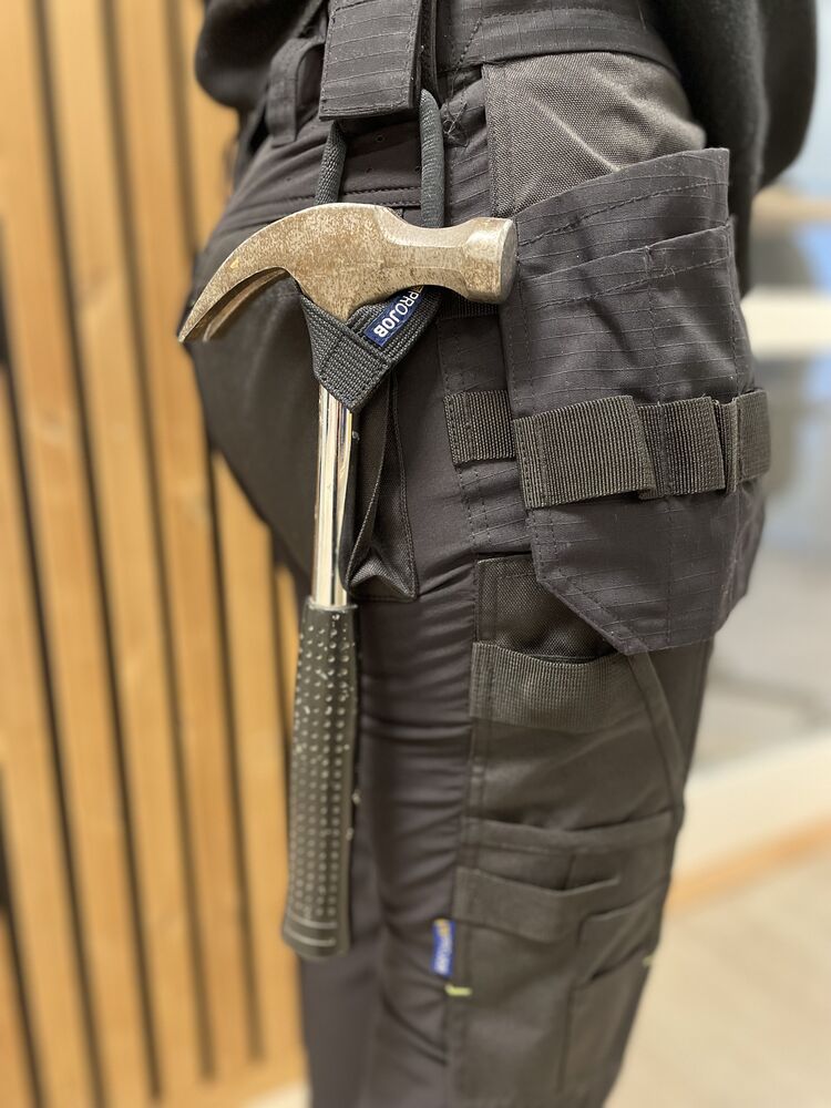 Myk hammerholder som passer til alle bukser med borrelås øverst; designet fungerer både på venstre og høyre side. Den er myk og fleksibel og trenger ikke tas av for vask.