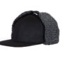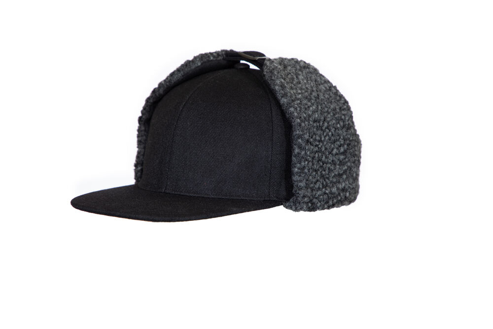 Caps med flat brem og påsydde øreklaffer med komfortable, varmende piléfôr på innsiden. Øreklaffene har trykknapper som kan klikkes enten under haken eller øverst.