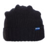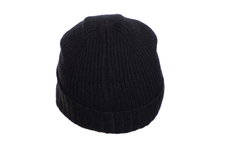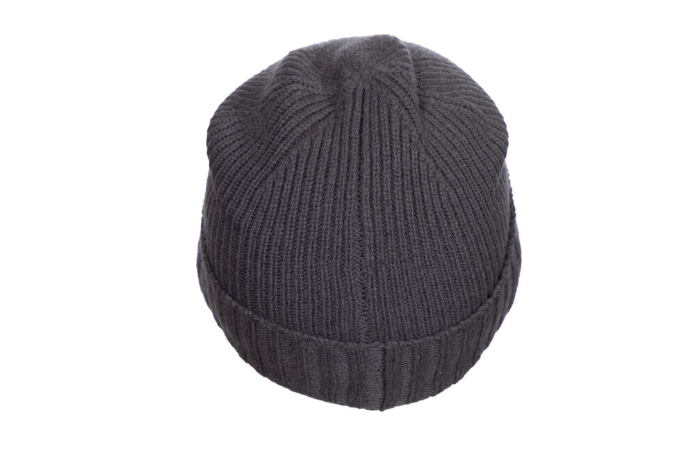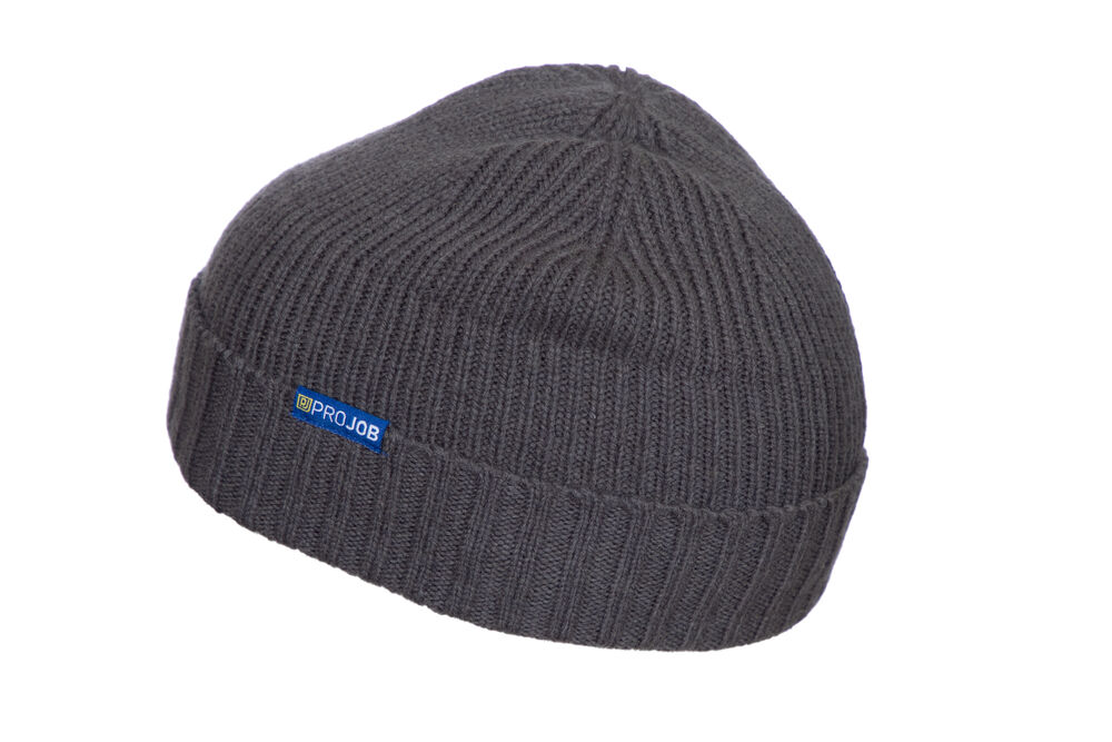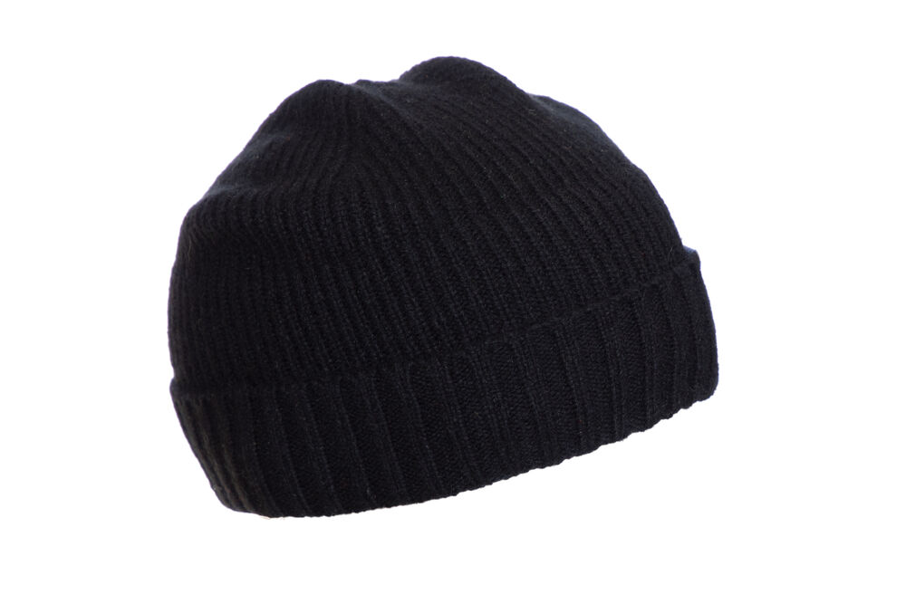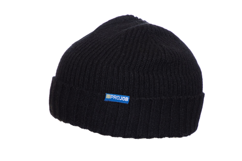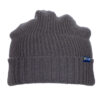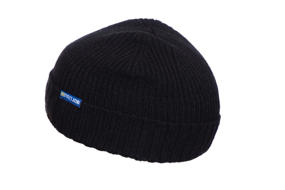 Ribbestrikket lue med brett. Vindstoppermateriale rundt ørene for økt komfort.