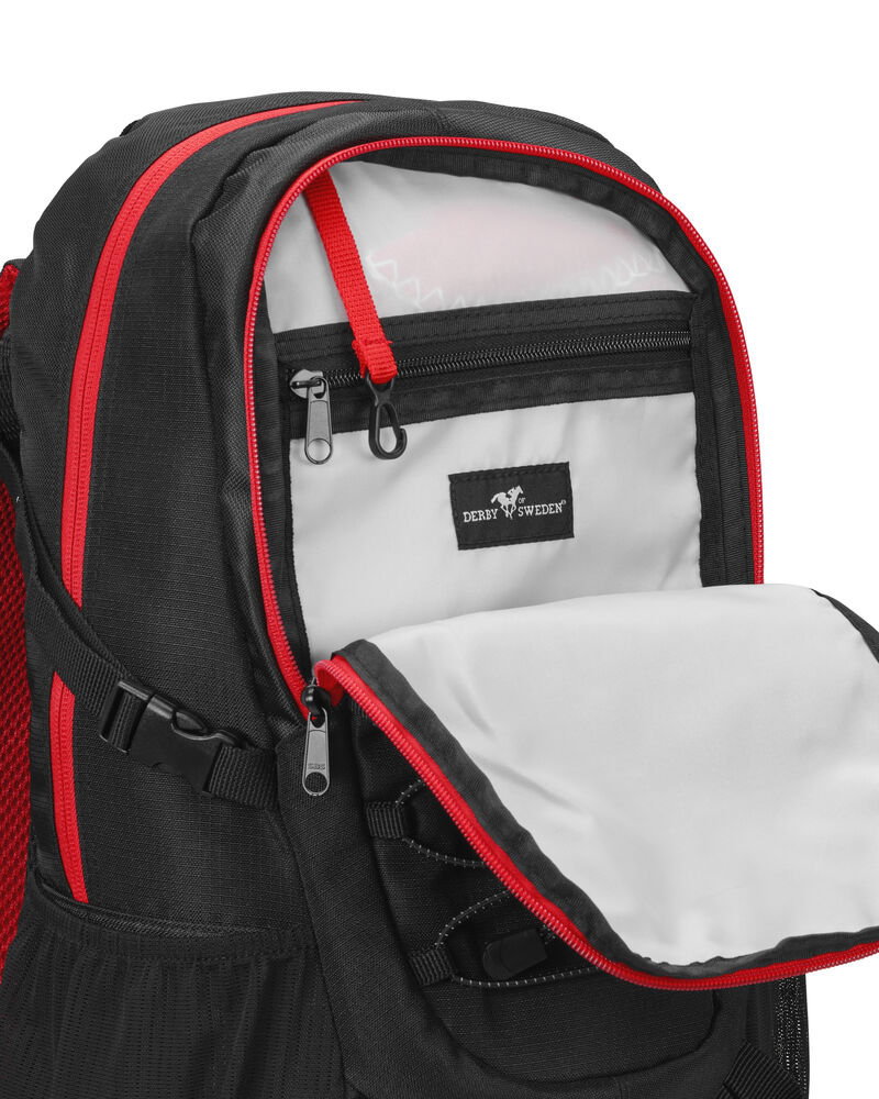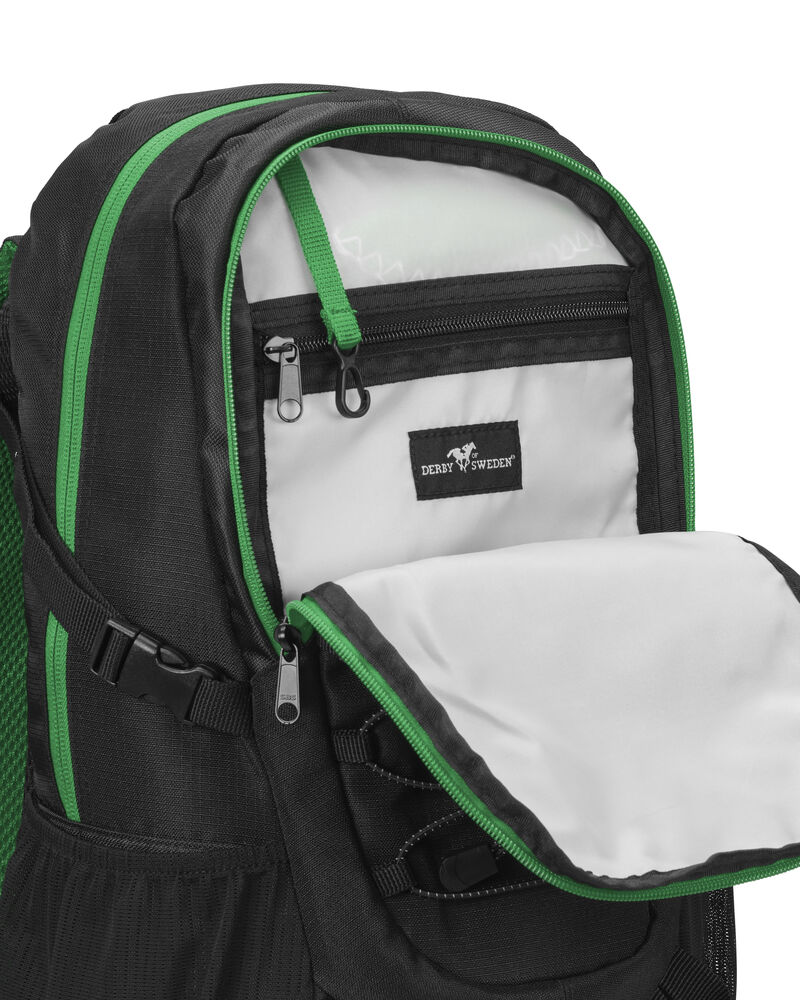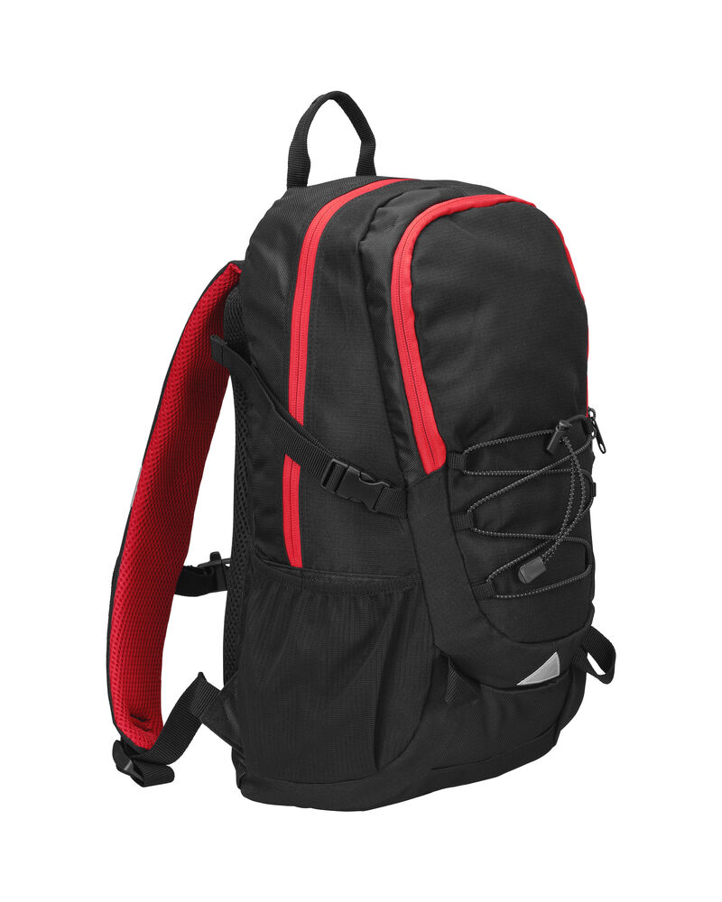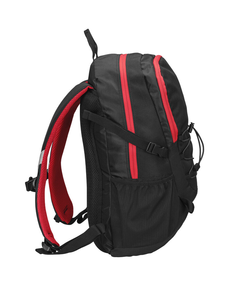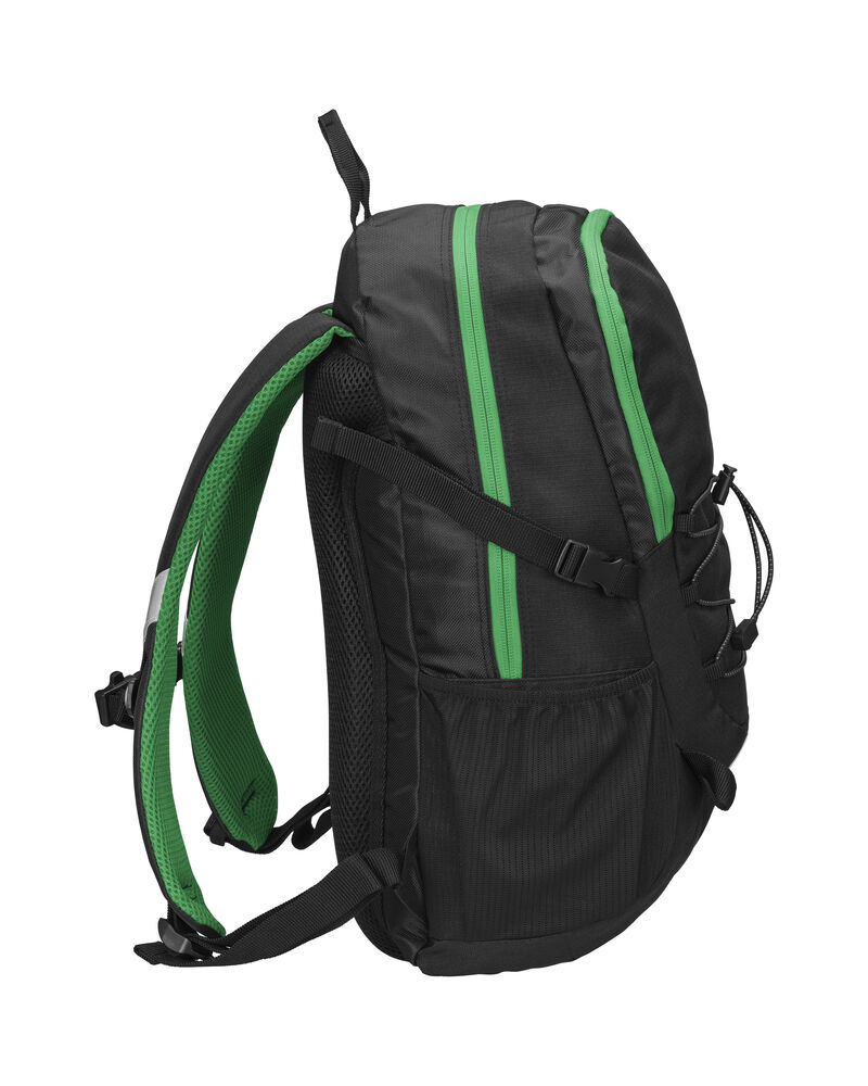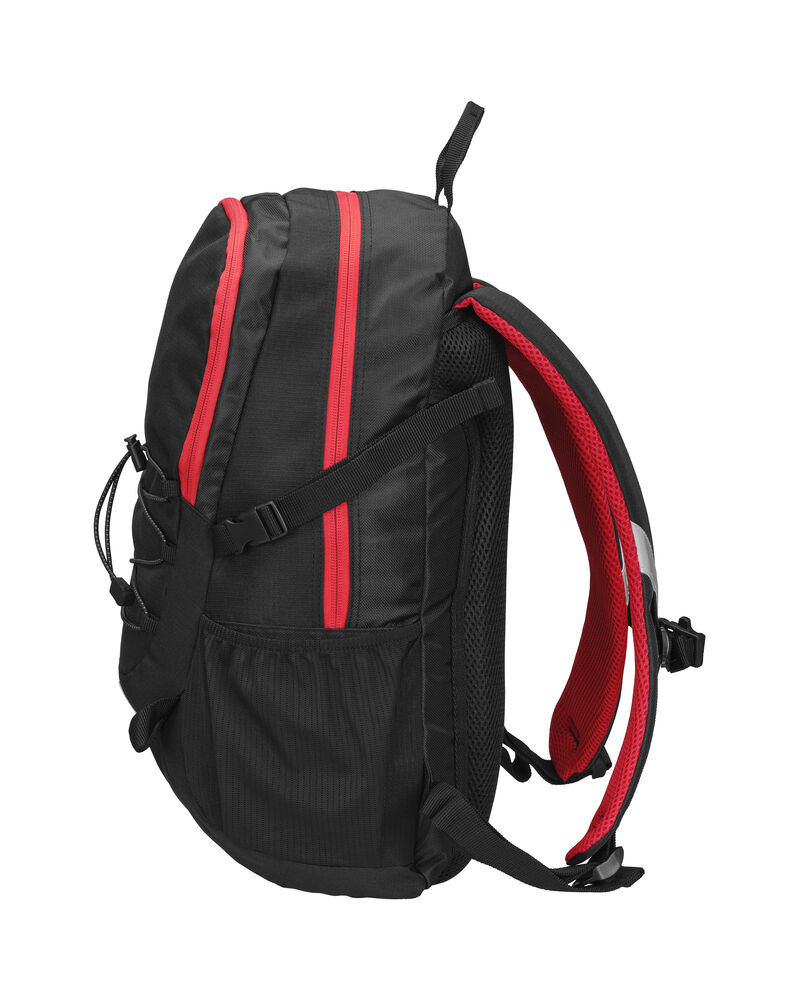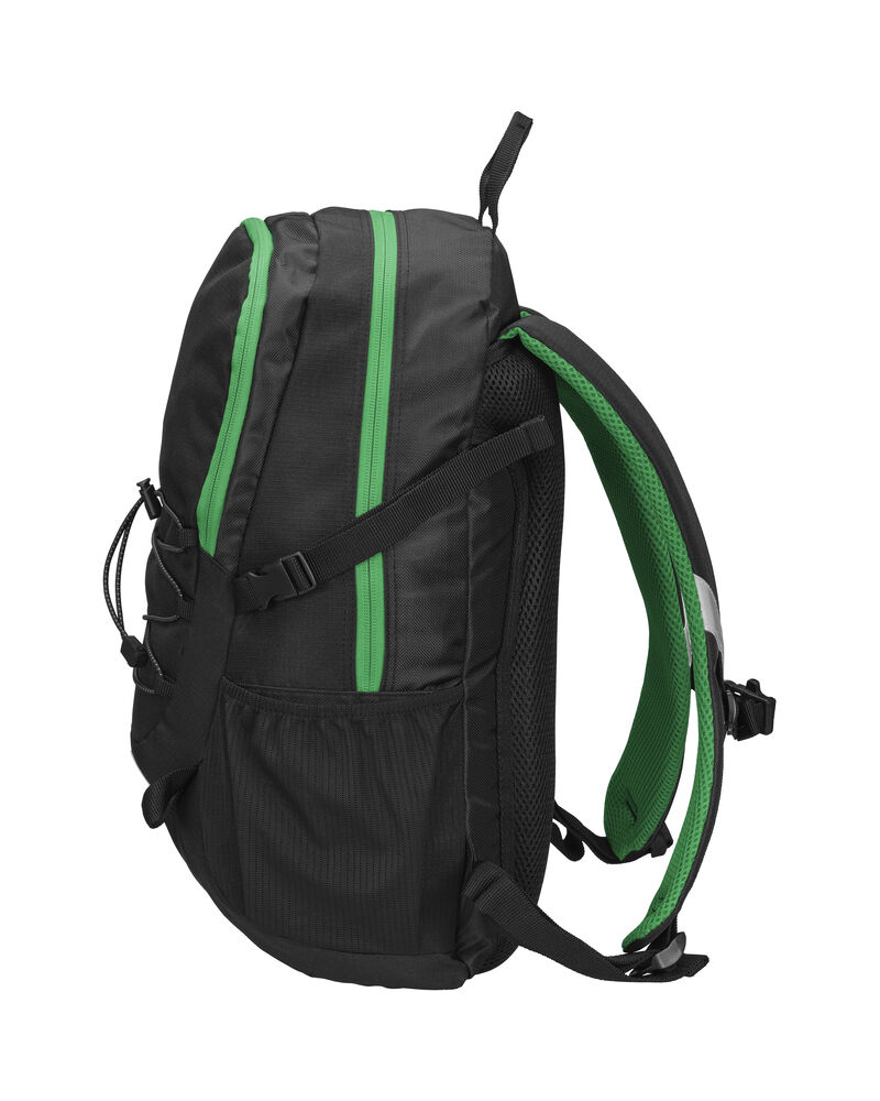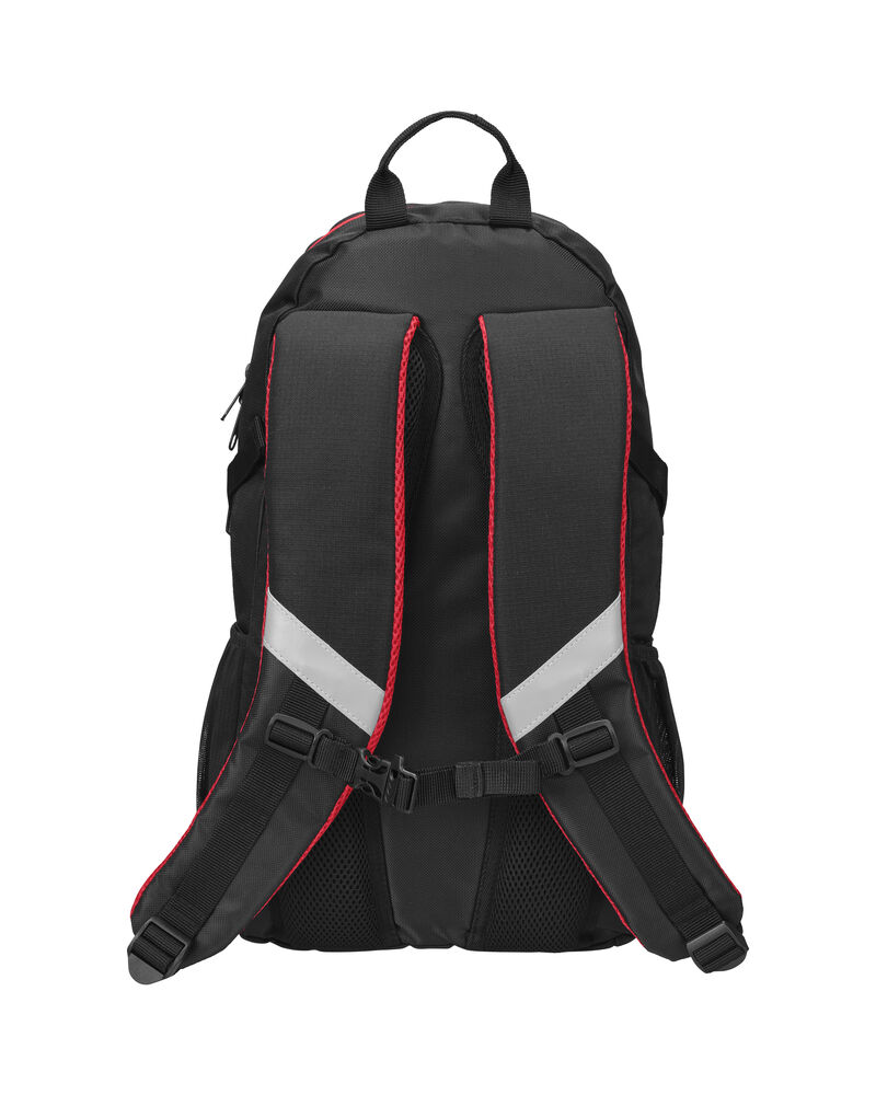 Sekk som har hovedrom med stor innerlomme, og fronlomme med en mindre lomme samt nøkkelrom. Ventierende ryggparti og formede skuldrestropper med brystspenne. Sidelommer i mesh og elastiske stropper i front for ekstra oppbevaring. Refleksdetaljer i front og på skulderpartiene.