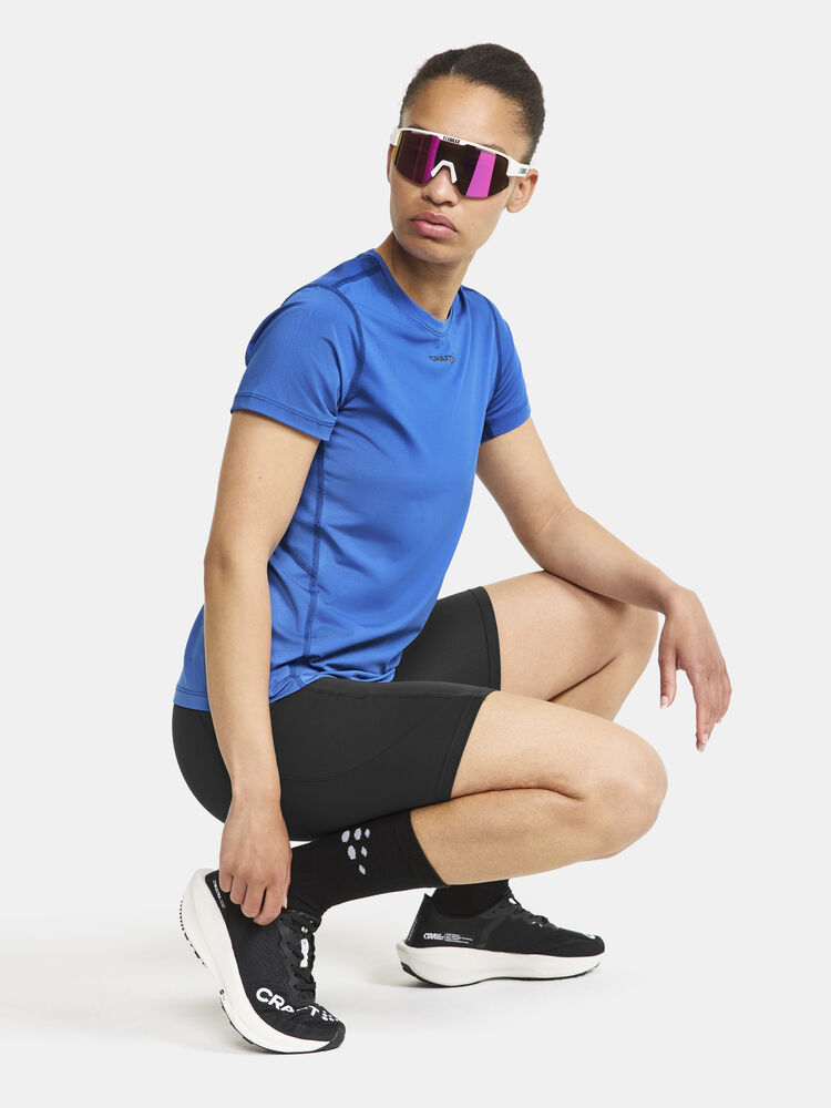 ADV Essence SS Tee er laget av resirkulert polyester og er en del av vår ambisjon om å øke andelen bærekraftige materialer i produktene våre og nå målet om å ta fullt ansvar for hele verdikjeden. Den resirkulerte polyesteren er ikke bare miljøvennlig, men tilbyr også eksepsjonell fukttransport og ventilasjon.