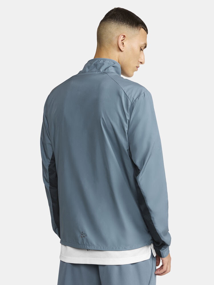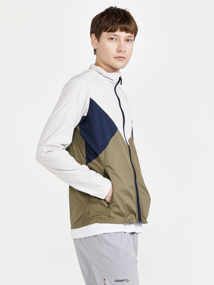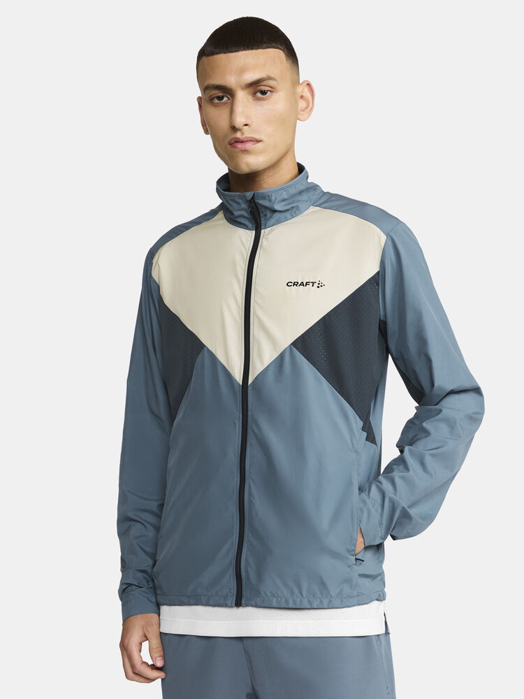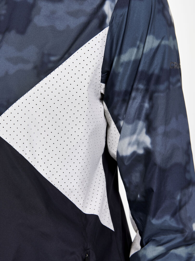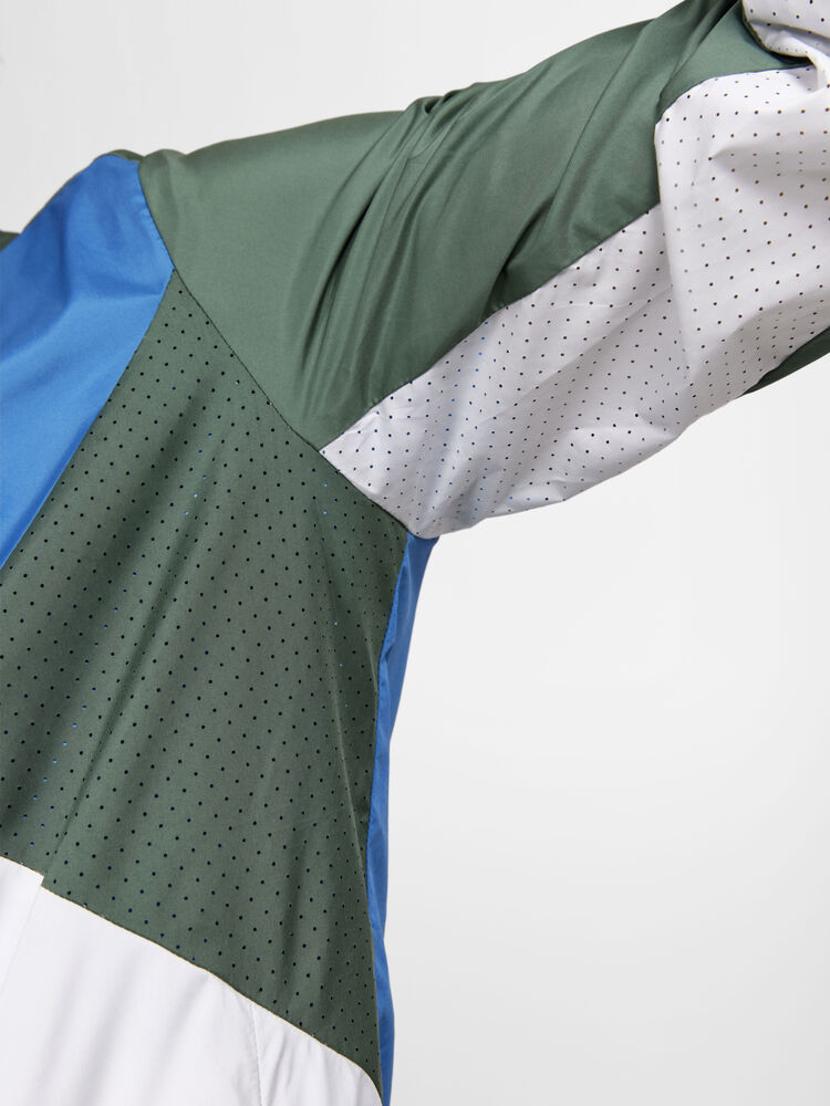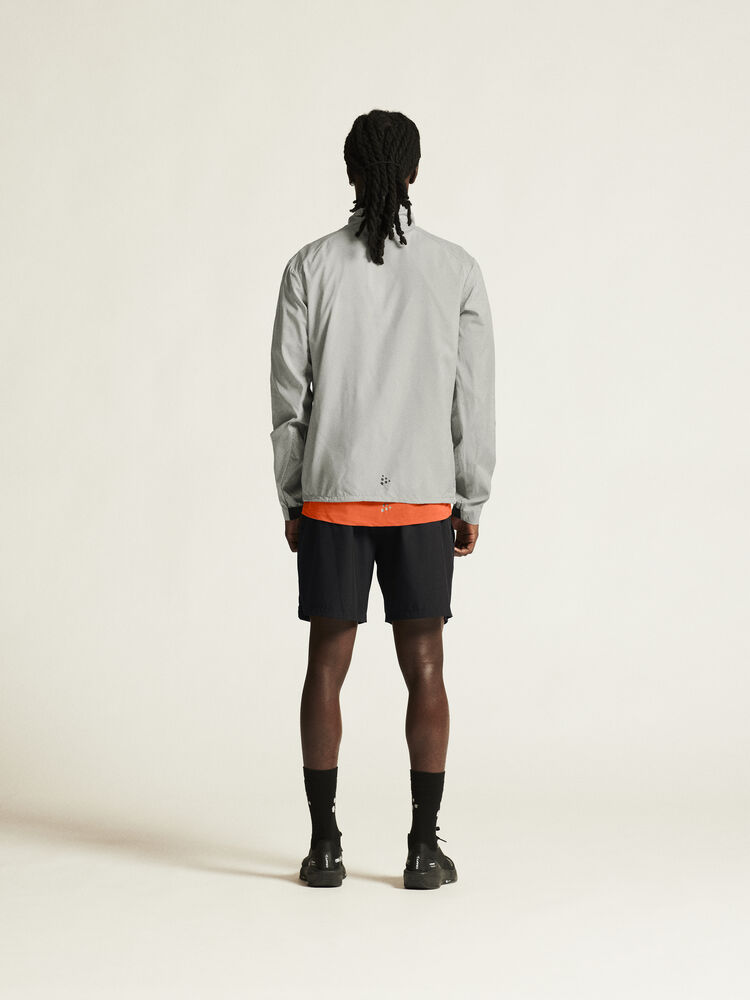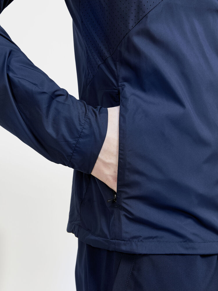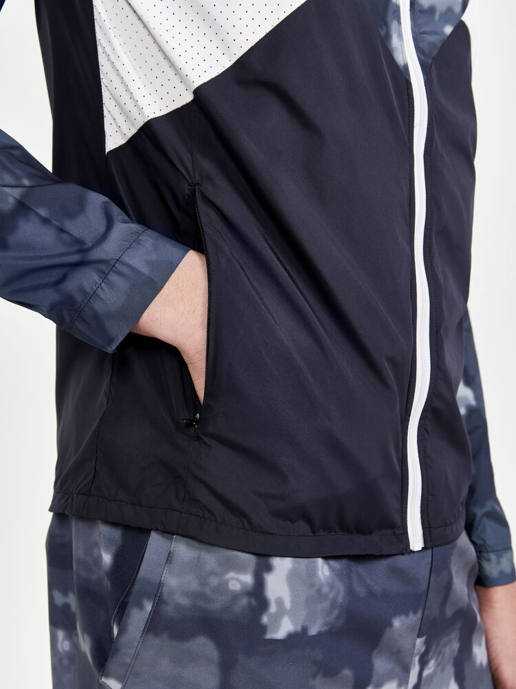 Vind- og vannavvisende herrejakke perfekt for intens trening, løping og lignende aktiviteter. Jakken er laget av vevd, myk og lett resirkulert polyester og har perforeringer på brystet og under ermene for bedre ventilasjon. Elastisk strikk i ermene.