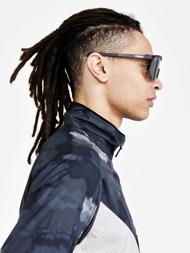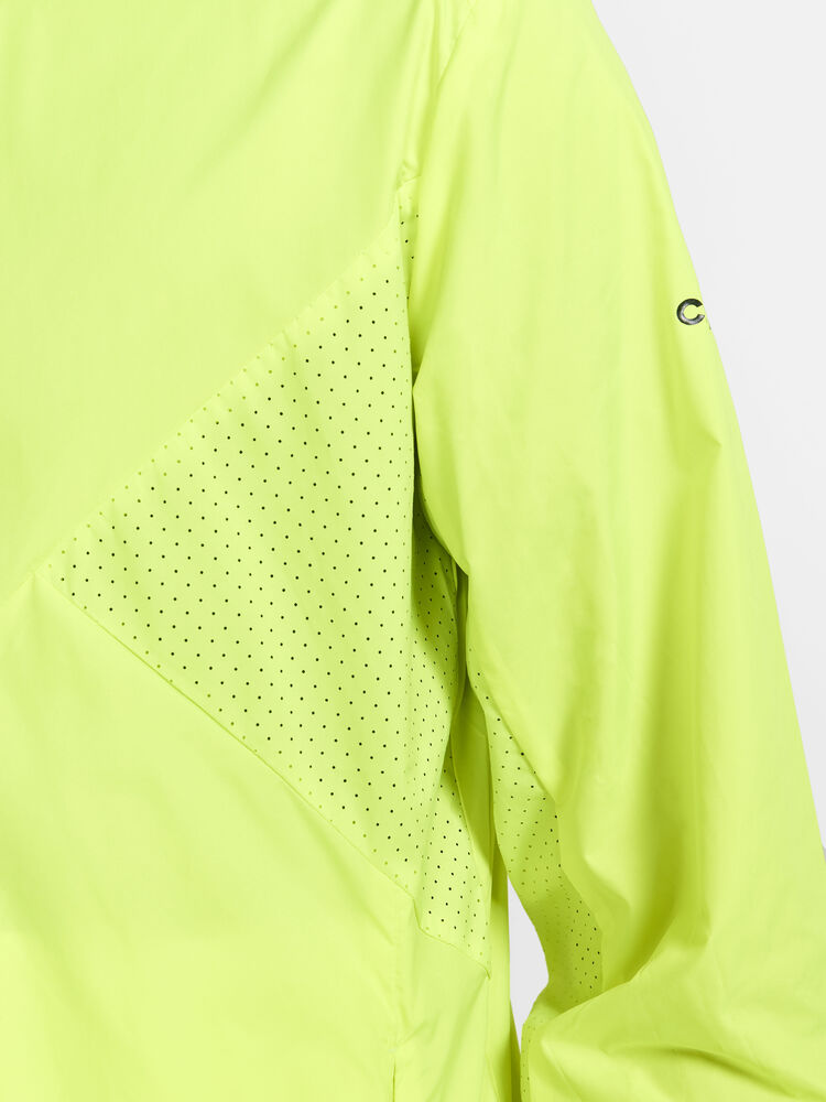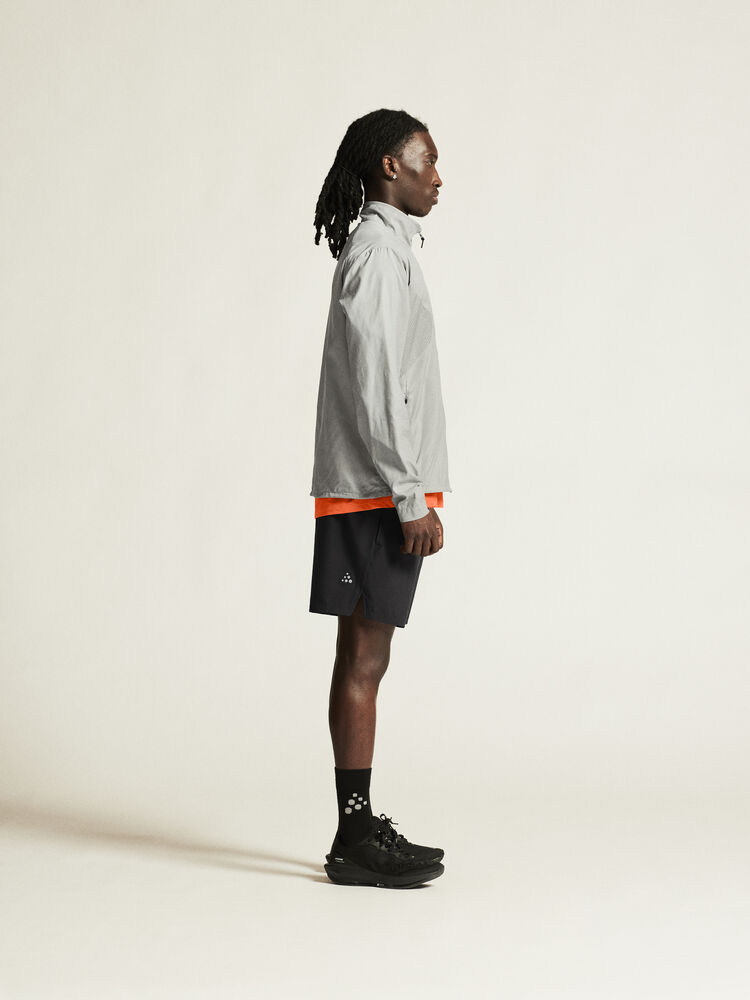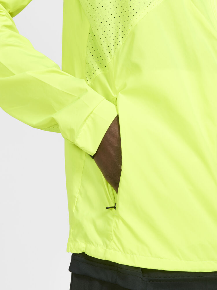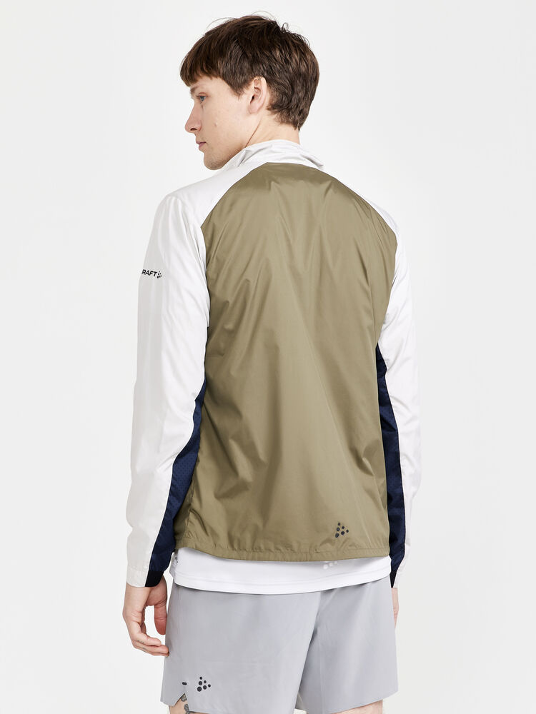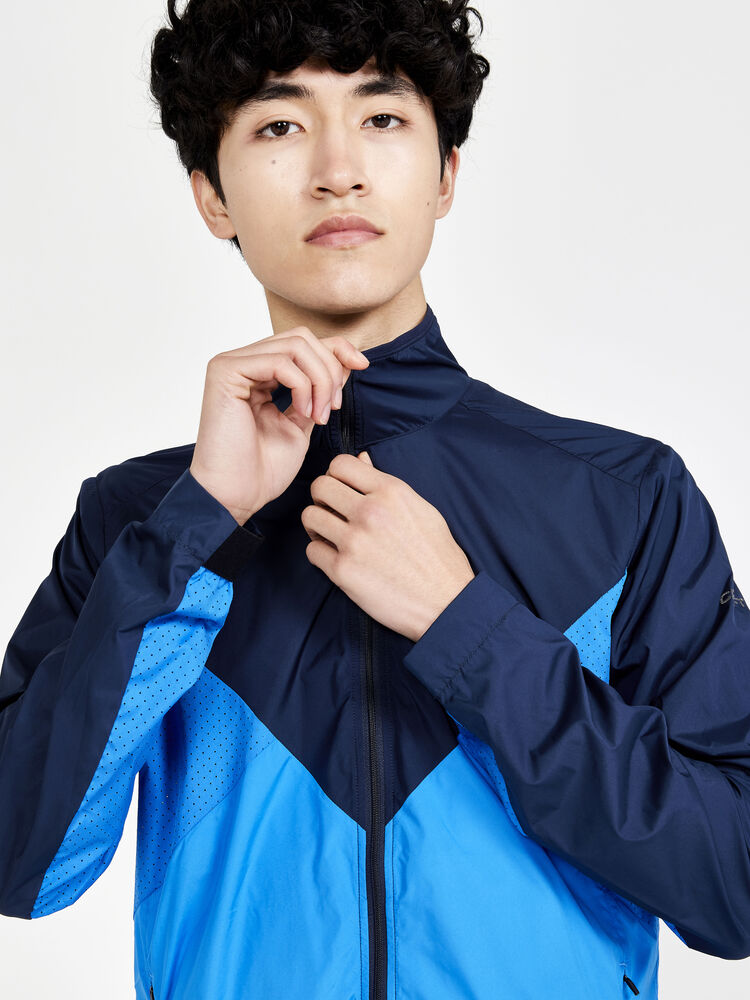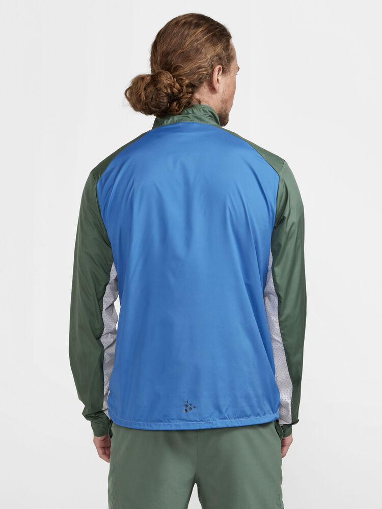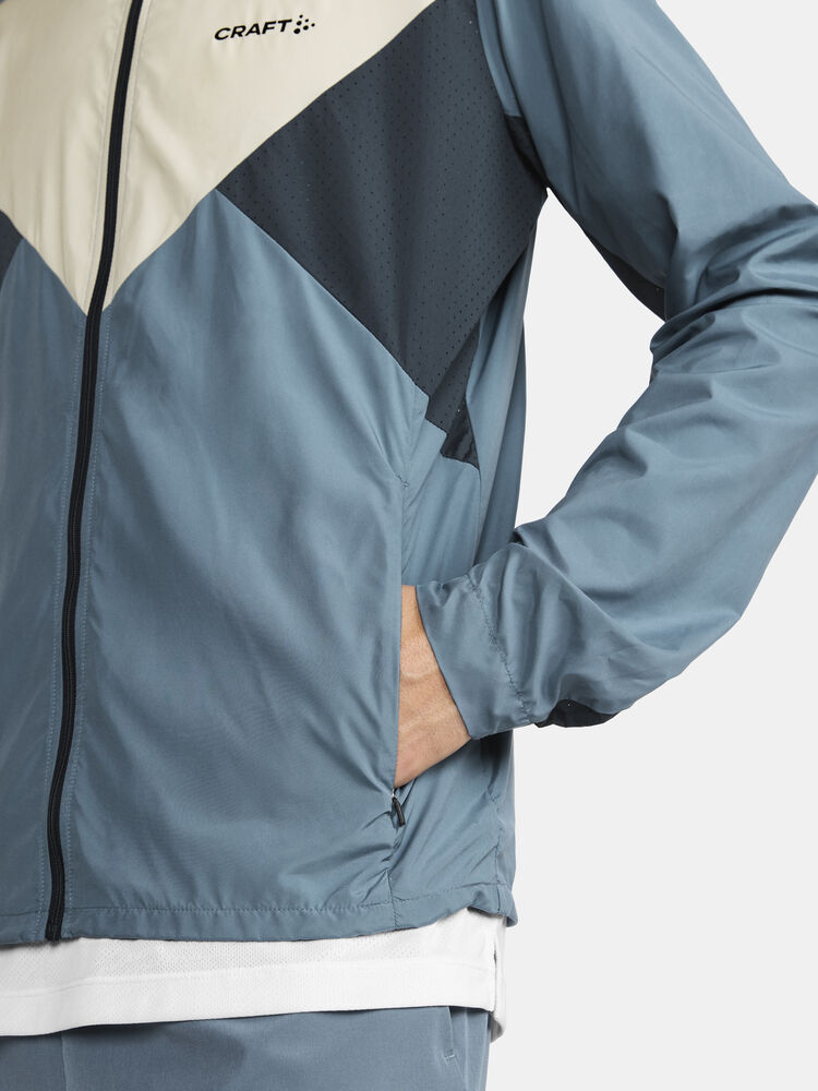 Vind- og vannavvisende herrejakke perfekt for intens trening, løping og lignende aktiviteter. Jakken er laget av vevd, myk og lett resirkulert polyester og har perforeringer på brystet og under ermene for bedre ventilasjon. Elastisk strikk i ermene.