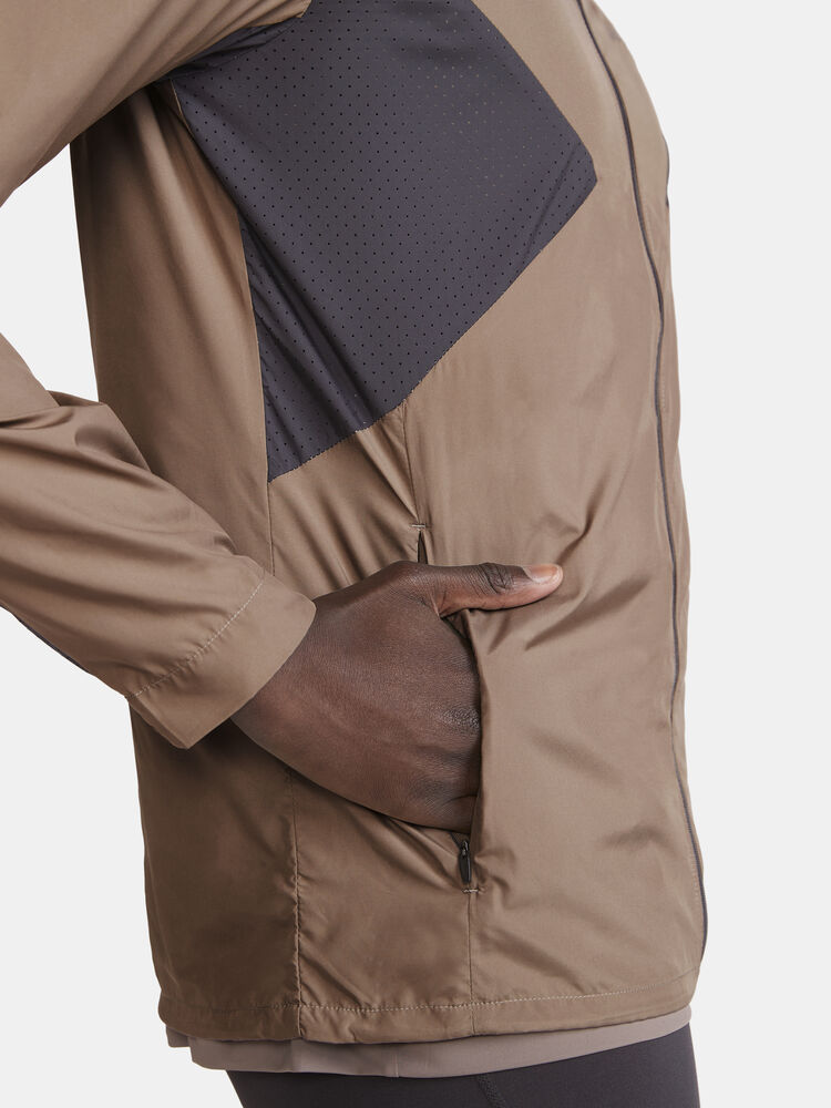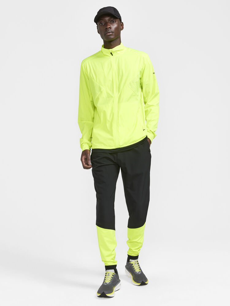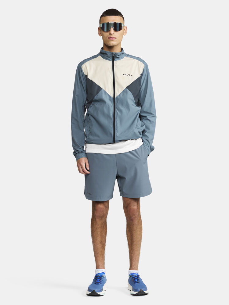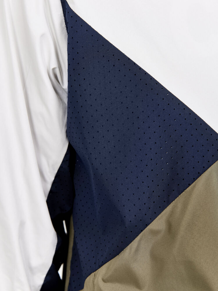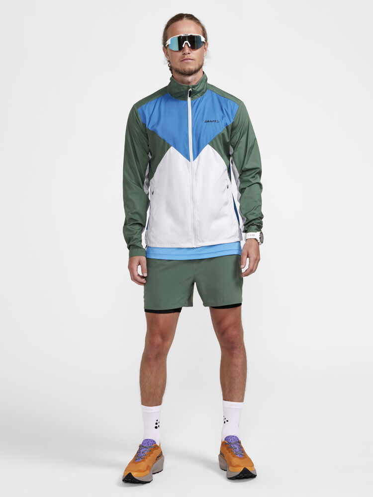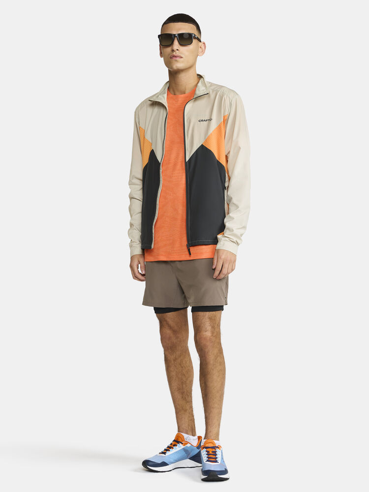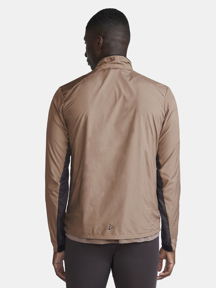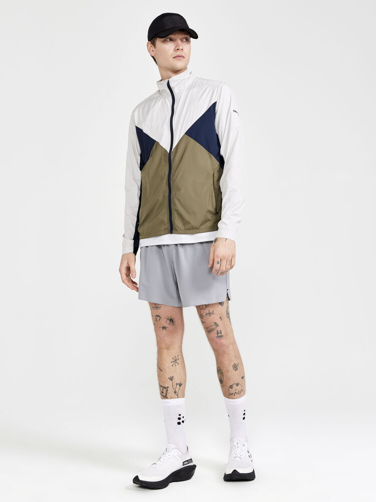 Vind- og vannavvisende herrejakke perfekt for intens trening, løping og lignende aktiviteter. Jakken er laget av vevd, myk og lett resirkulert polyester og har perforeringer på brystet og under ermene for bedre ventilasjon. Elastisk strikk i ermene.