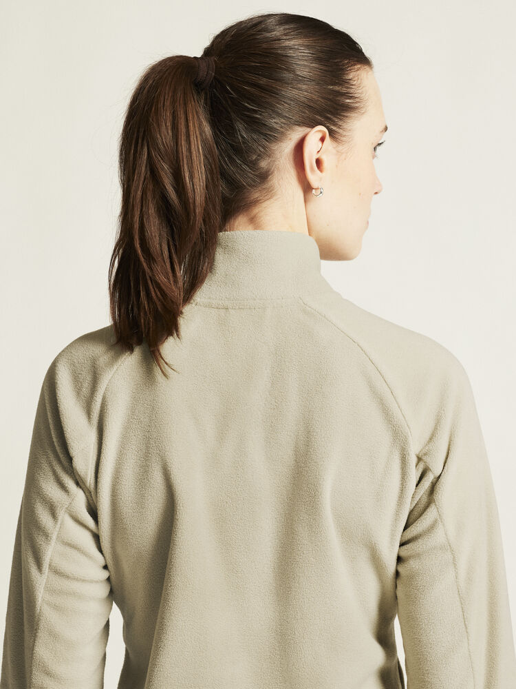 Avansert mellomlagsjakke til dame i myk, børstet fleece med atletisk snitt som passer like godt til friluftsaktiviteter som til hverdagsbruk.