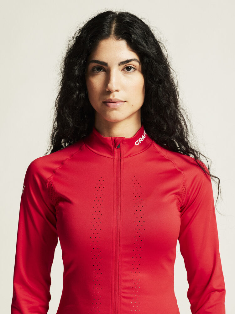 ADV Nordic Ski Club Race er en avansert langrennsdrakt utviklet for både trening og konkurranse. Drakten er laget i et resirkulert, høyfunksjonelt materiale med god stretch for optimal passform, bevegelsefrihet og prestasjon. Den har laserkutthull foran og bak samt mesh under armene for bedre lufting.