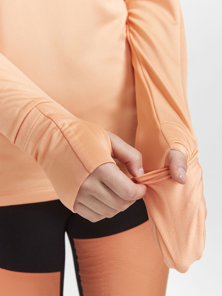 ADV SubZ LS er en langermet løpetrøye med polokrage og glidelås i halsen. Trøyen holder deg behagelig varm gjennom intense treningsøkter på kalde dager. SubZ LS er laget av funksjonell polyestertrikot med frotté som gir ekstra varme og komfort, og har mesh i armhulene for effektiv ventilasjon. Dobbeltfoldede mansjetter med tommelgrep holder hendene varme.
