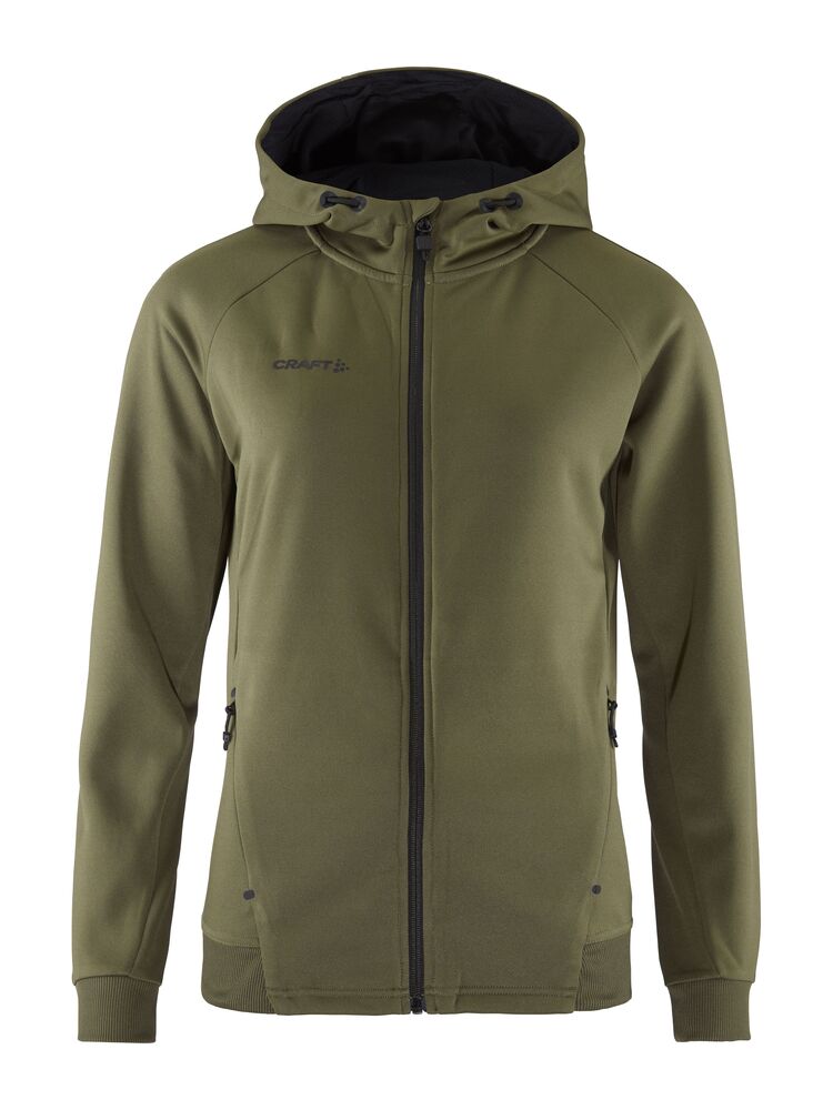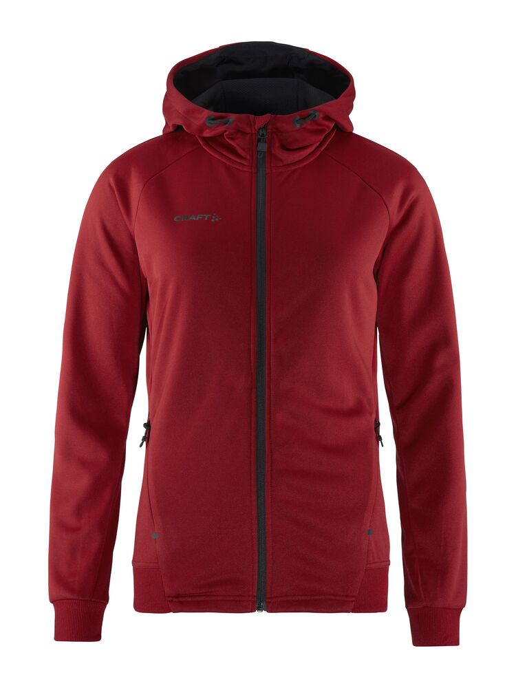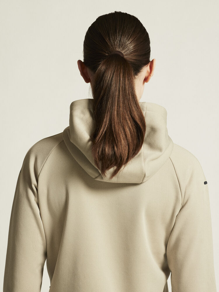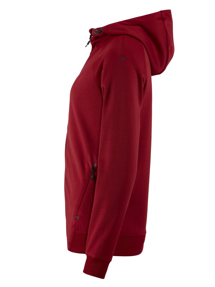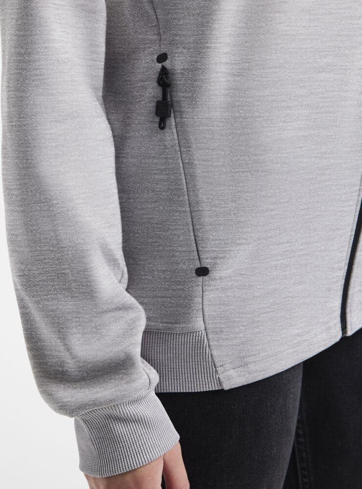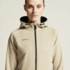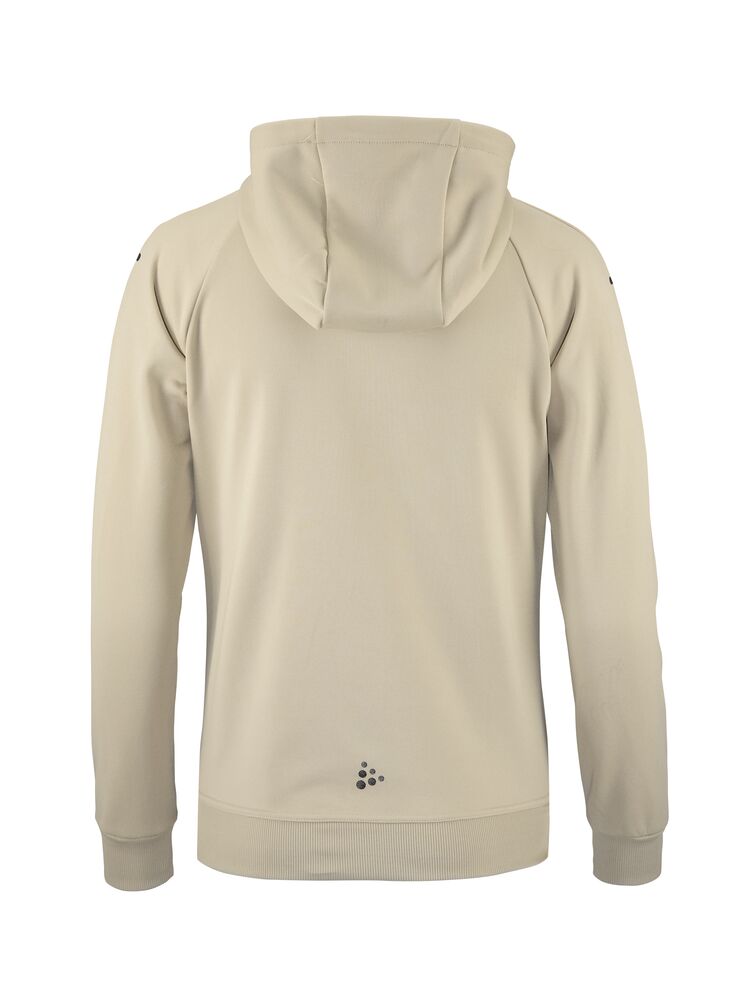 Myk og funksjonell hettejakke med stretch. Produsert av resirkulert polyester. To lommer i front.