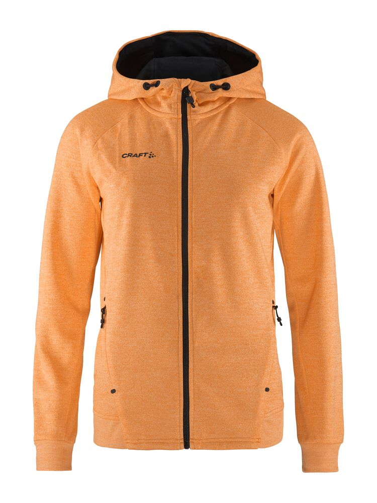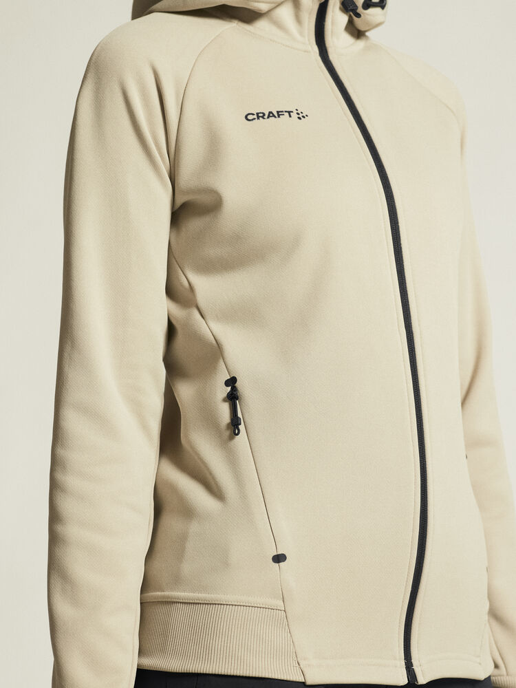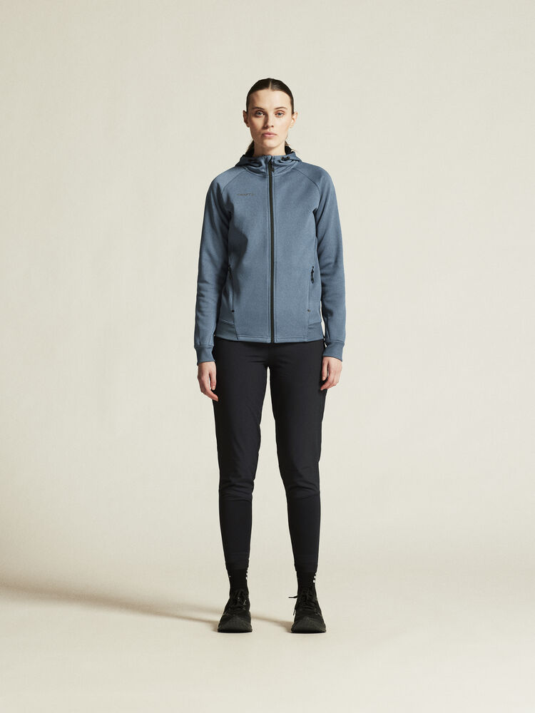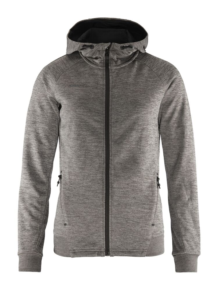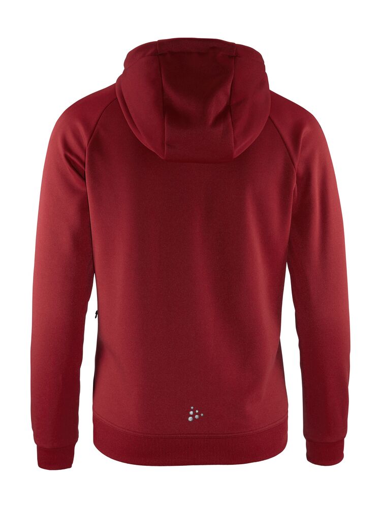 Myk og funksjonell hettejakke med stretch. Produsert av resirkulert polyester. To lommer i front.