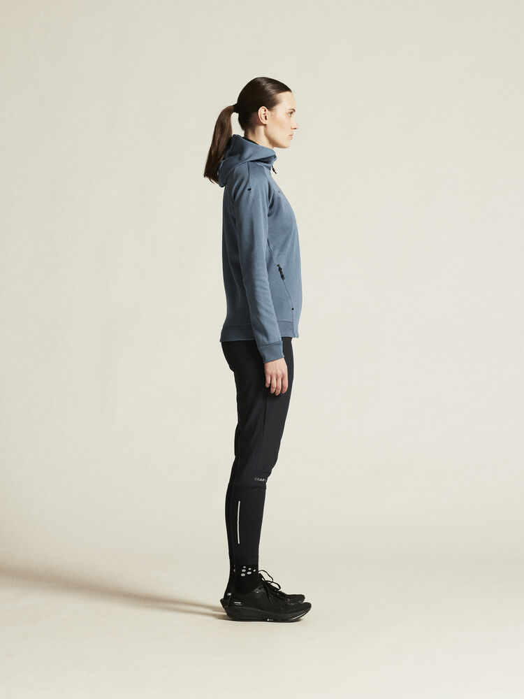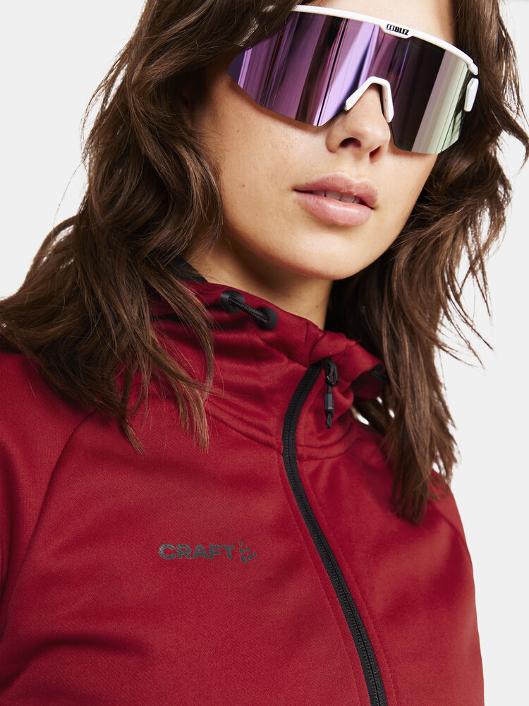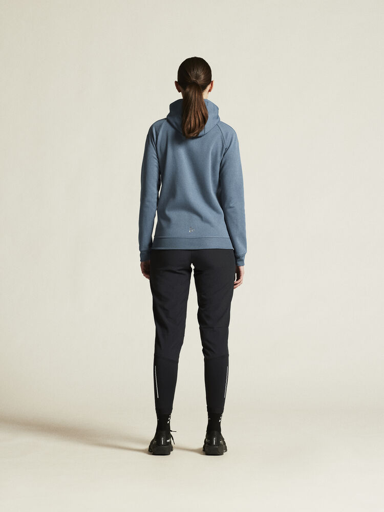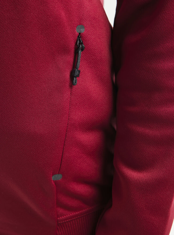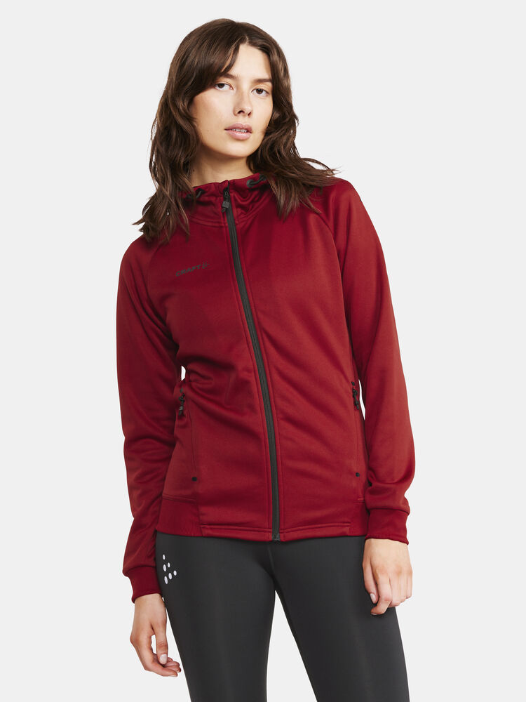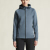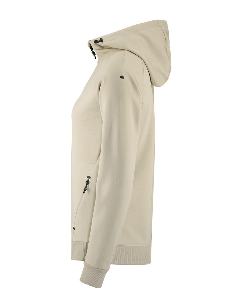 Myk og funksjonell hettejakke med stretch. Produsert av resirkulert polyester. To lommer i front.