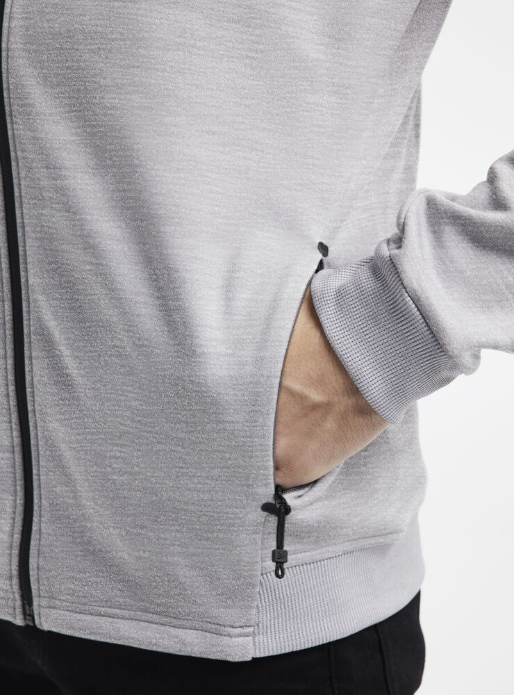 Myk og funksjonell jakke med stretch. Produsert av resirkulert polyester. To lommer i front.