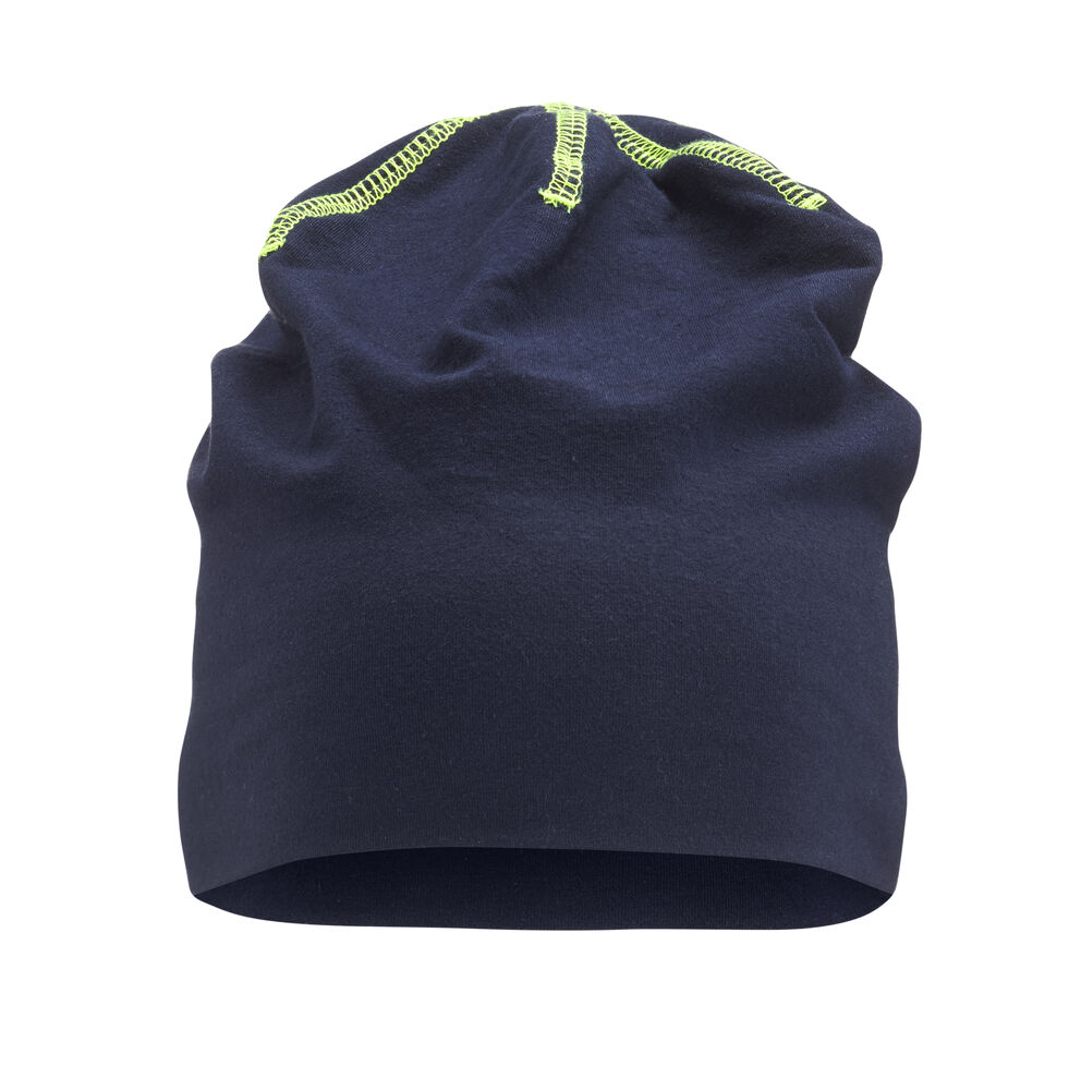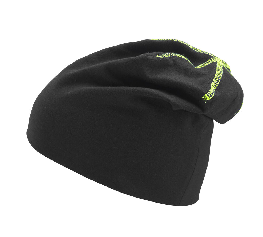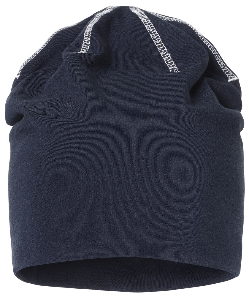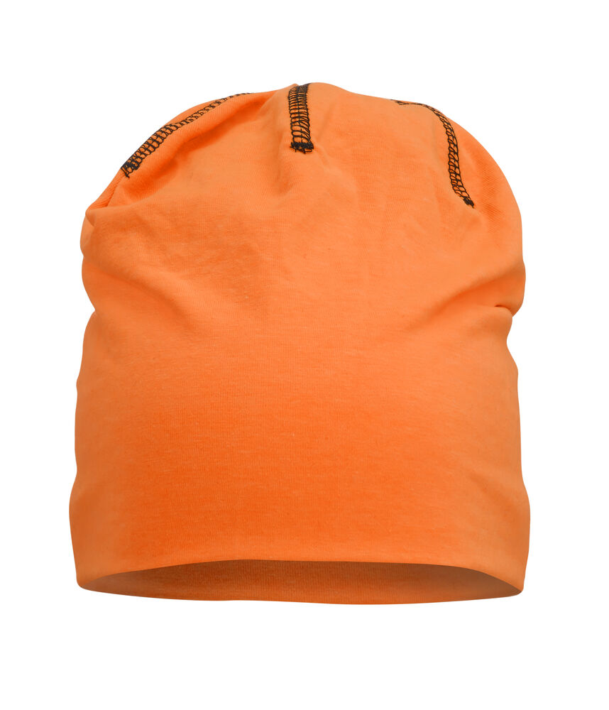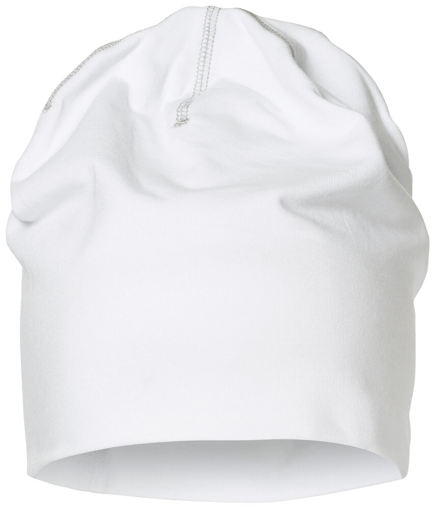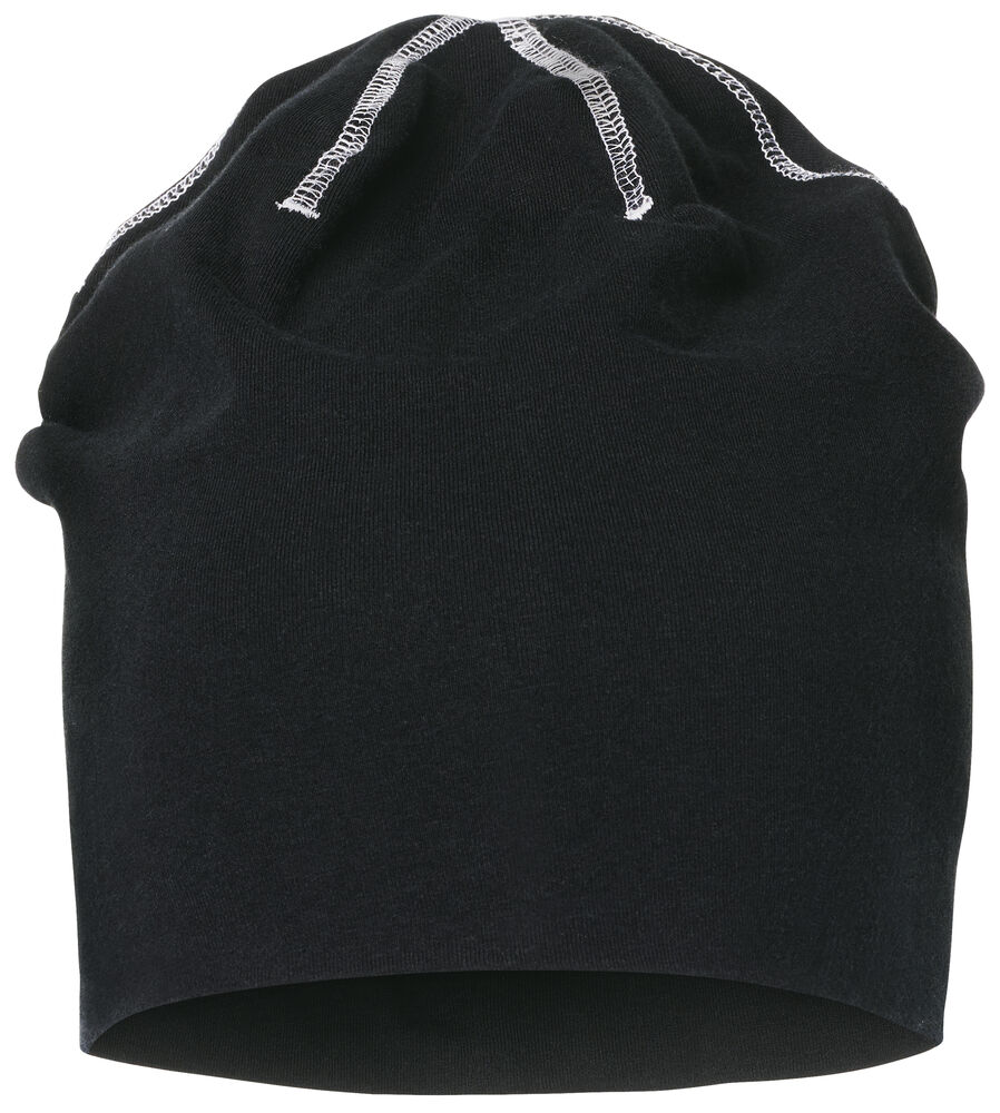 Behagelig og sporty lue i single jersey-kvalitet med dekorasjonssømmer. Slettstrikket for å legge til rette for trykk.