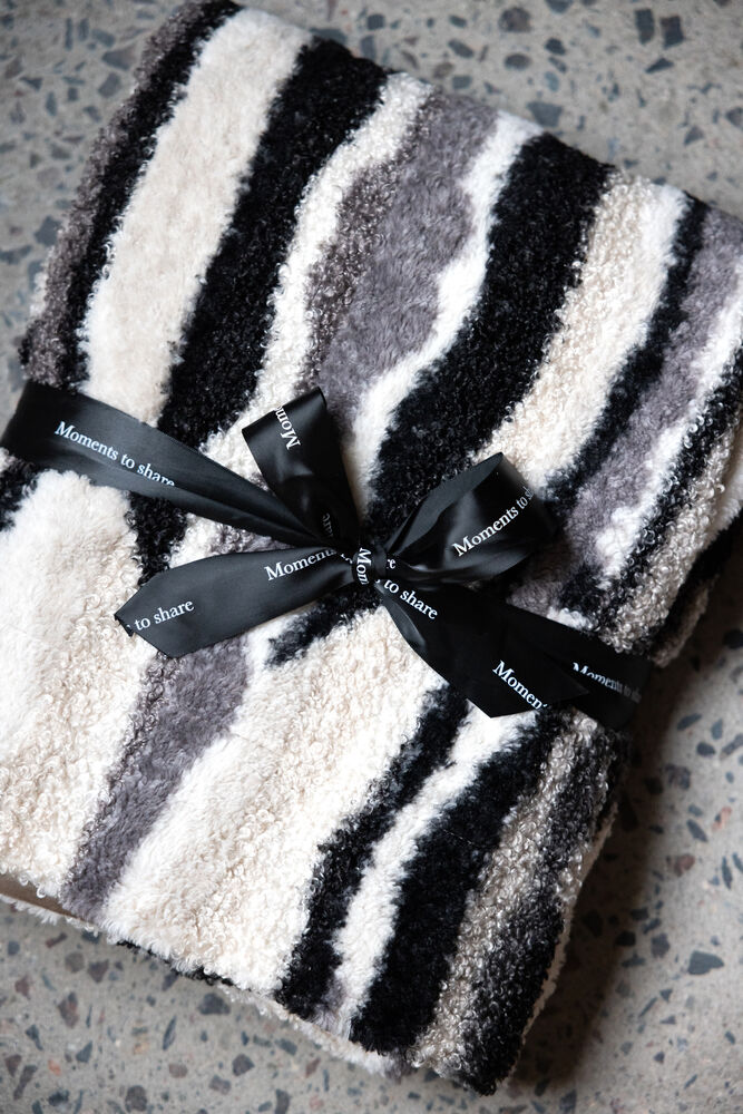 Oppdag vårt fantastiske, koselige og rutete pledd, Alba, med et allsidig print som passer inn overalt. Strukturen er en spennende blanding av teddy- og fuskepels, som gir en kjølig og luksuriøs følelse. Perfekt for både koselige kvelder inne og til utendørs bruk. Pleddet laget av polyester og med en vekt på 350/180 gsm tilbyr den både varme og komfort. Fargene er blandet i grått, beige og sort, noe som gjør det enkelt å matche med innredningen din. Mål: 130×170 cm. Kommer med et fin bånd.